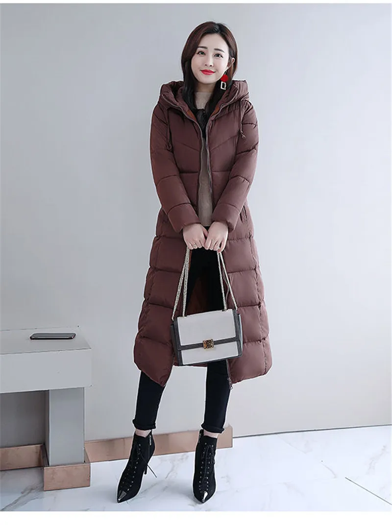 UHYTGF женская пуховая куртка из хлопка, модные длинные зимние паль...