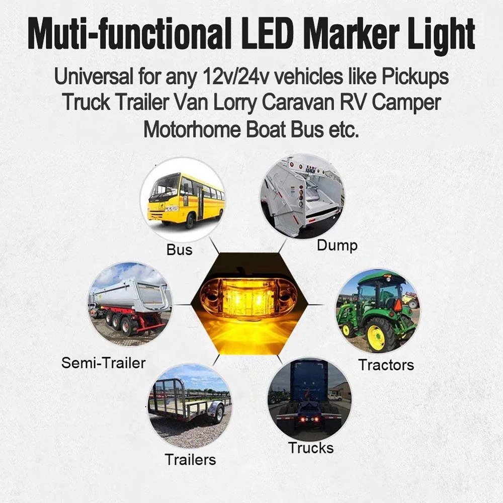 Легко устанавливается.Сертификат DOT/E-MARK одобренДолгий срок службы, высокое качество piranha светильник, особенности в супер высокой яркости, более низкой мощности, окружающей среды, и лучше рассеивания тепла.IP67 водонепроницаемый и пыленепроницаемый.Используйте в качестве сигнала поворота, ширины лампы, боковой маркер индикатор, зазор светильник, задний светильник, лицензионный светильник, парковочный светильник, идентификационные лампы и т. Д.Универсальный для любой 12v/24v, грузовики, трактора, в байкерском стиле, Van, RV кемпер, трейлеров, шасси, пикап, грузовик, технические средства передвижения, электромашина.