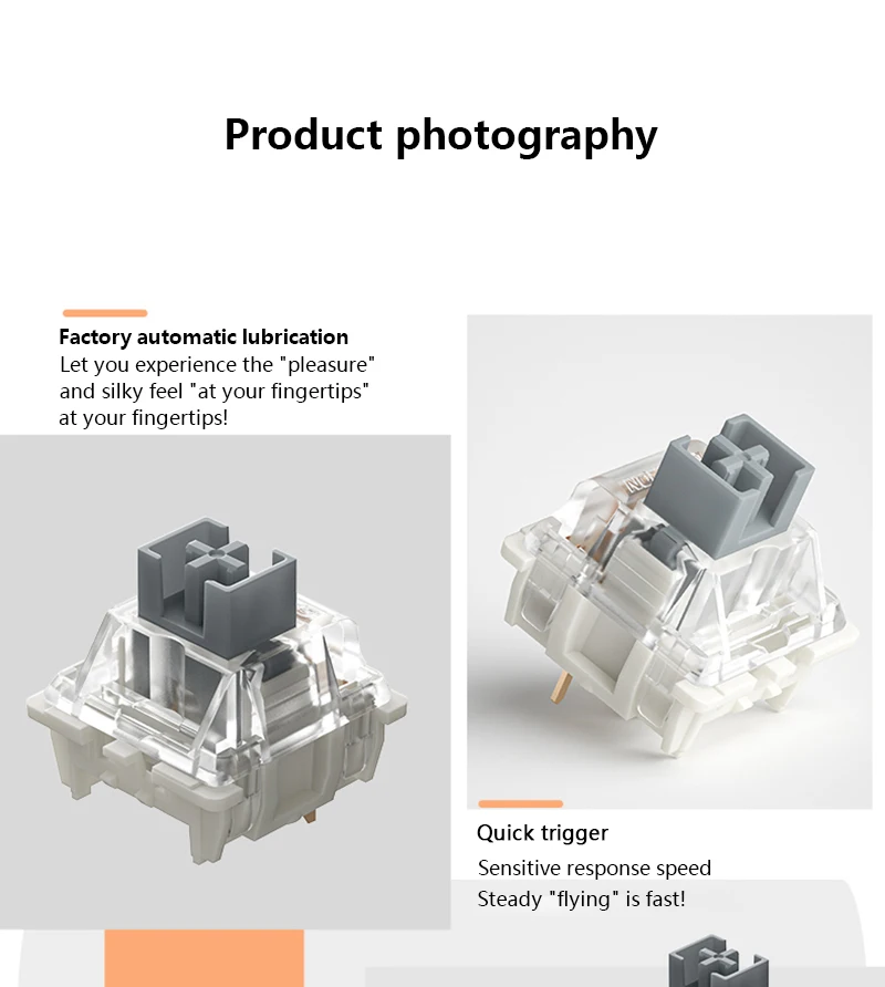 Механическая клавиатура Gateron Silver Pro Switch, линейная, Пыленепроницаемая, одинарная, двухступенчатая, гладкая смазка
