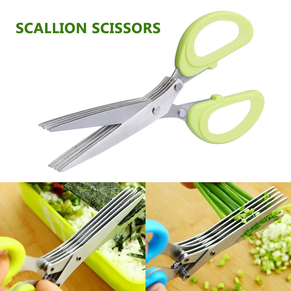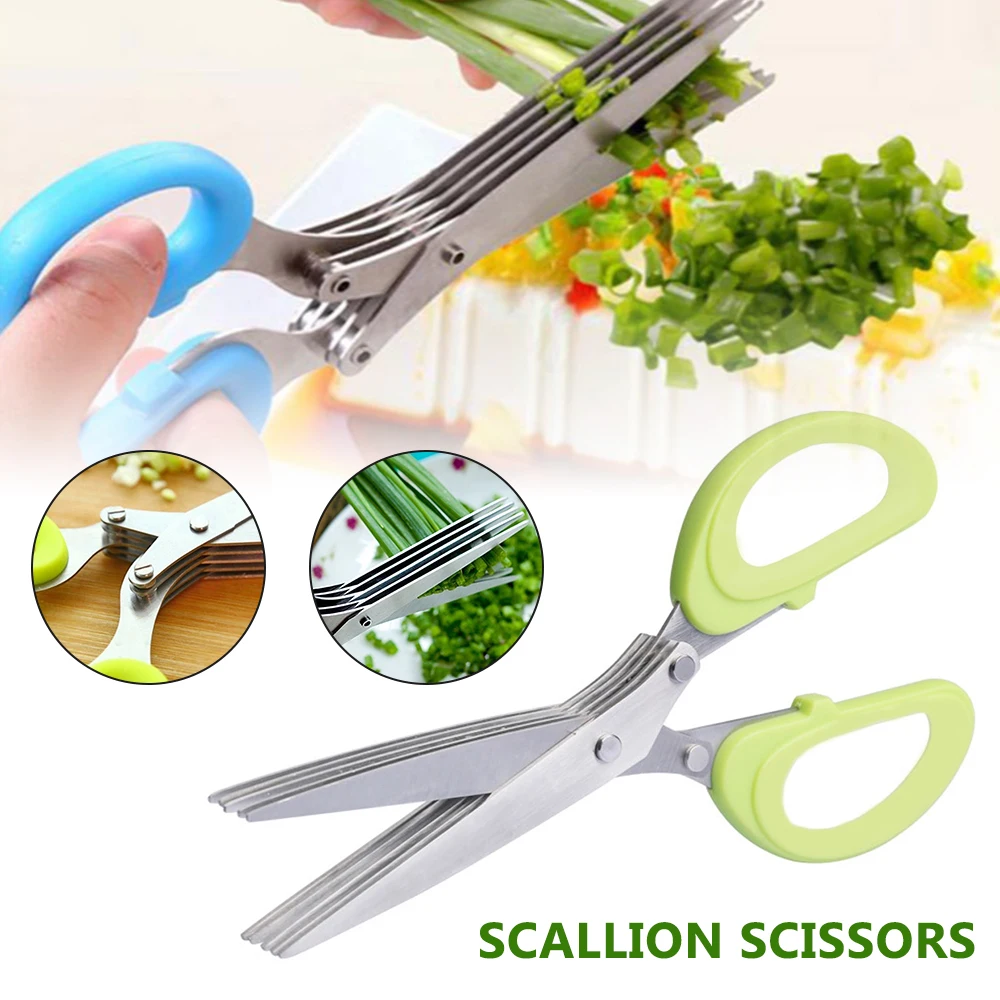 Многофункциональные Многослойные ножницы для зеленого лука, нож для резки лука из нержавеющей стали, ножницы для специй и трав из морских водорослей, кухонные ножницы