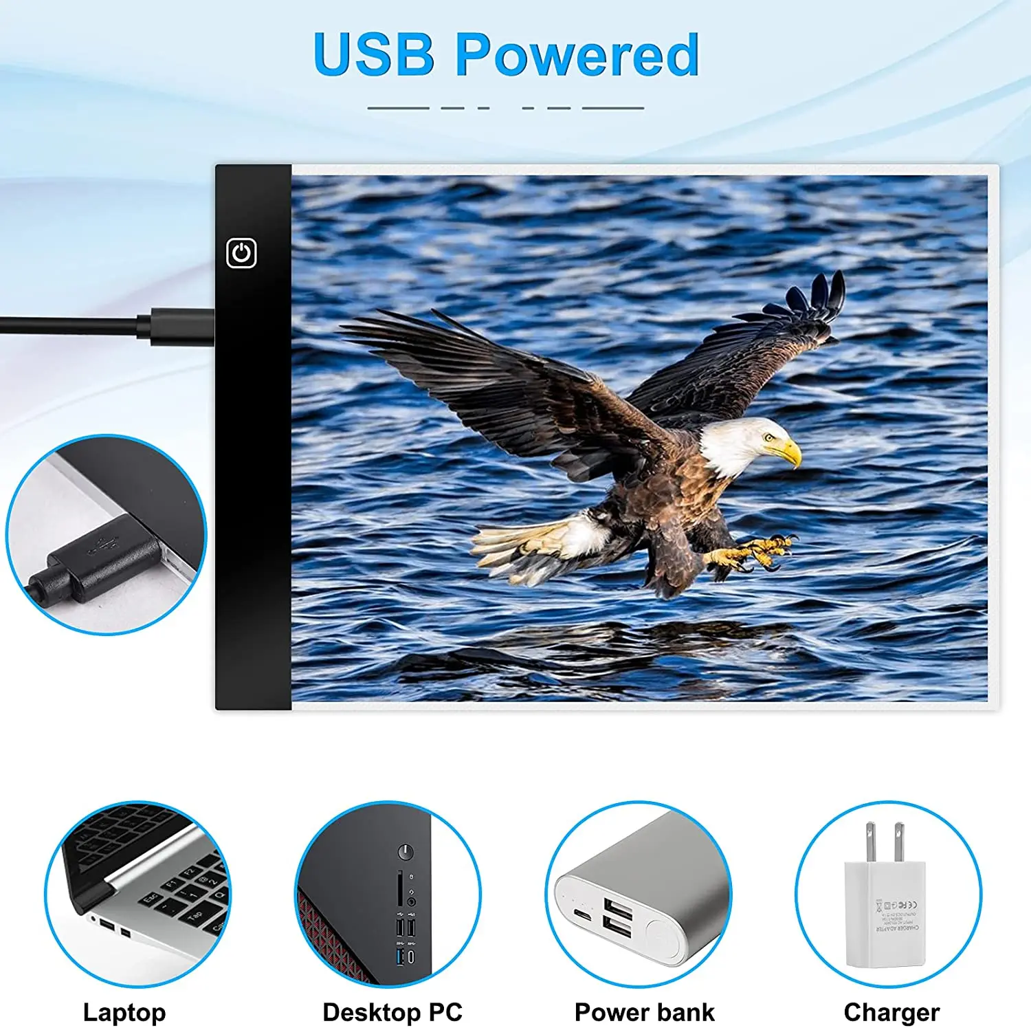 Название продукта: Светодиодная панель для копированияМатериал изделия: пластикРазмер изделия: A5 15*24 см A4 23,5*33,5 см USB 1,5 мЦвет изделия: случайный цвет
