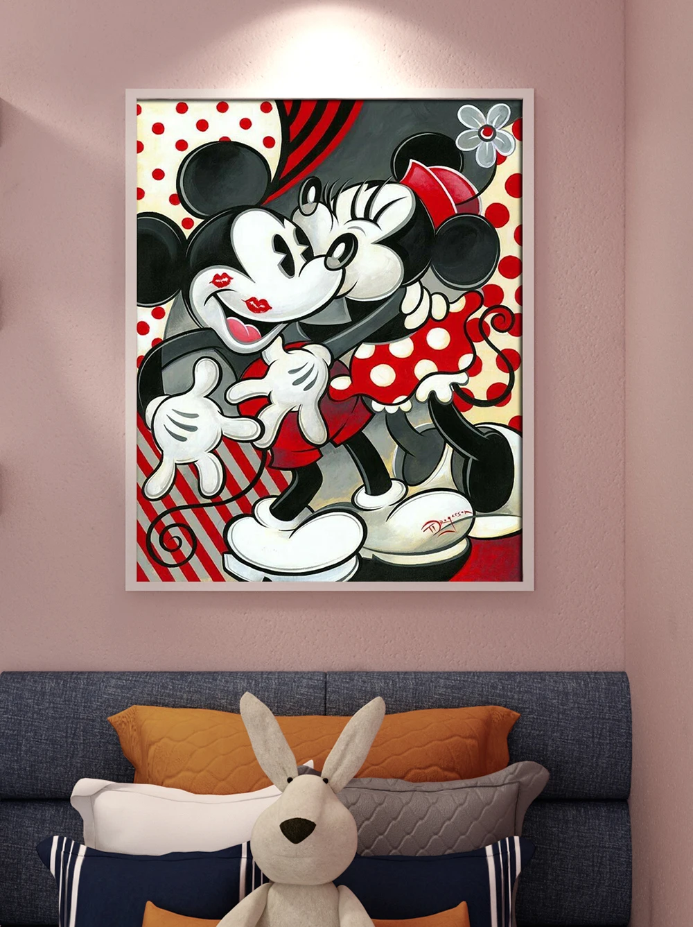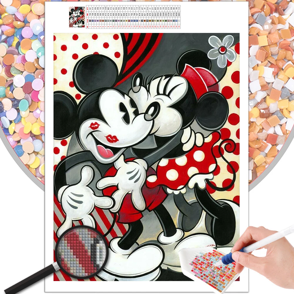 Алмазная живопись мультфильм Микки Минни пара любовь целуй 5D DIY мозаика вышивка полный квадратный Круглый Набор для вышивки крестиком домашний декор