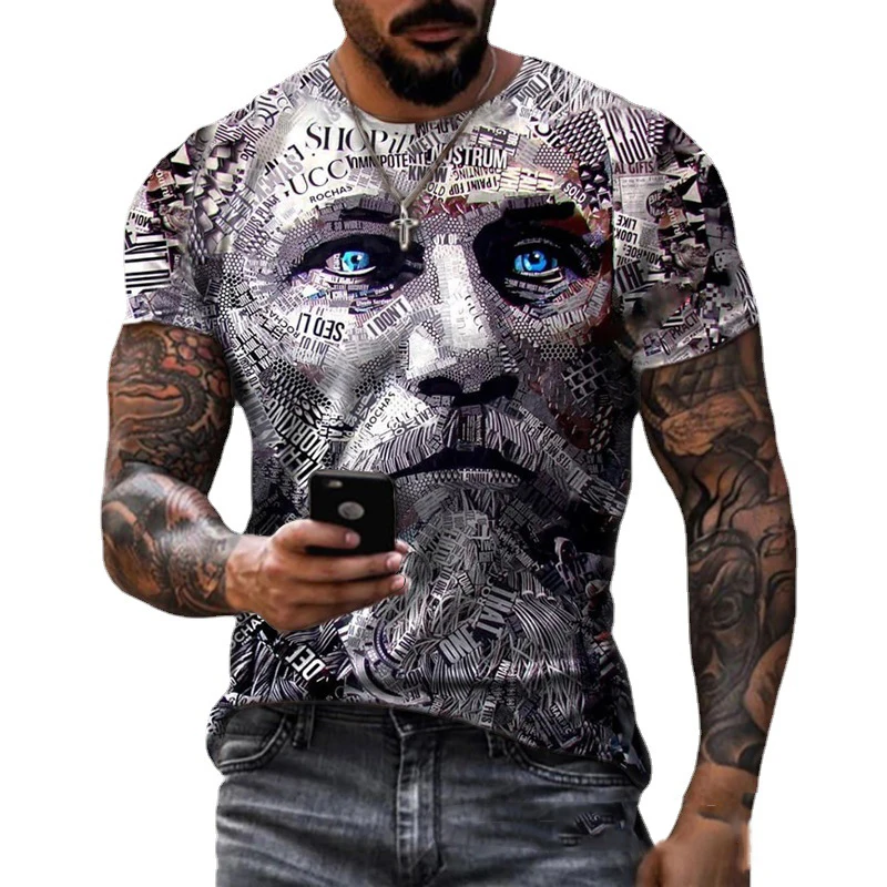 Летняя мужская Повседневная модная Универсальная футболка с 3D-прин...