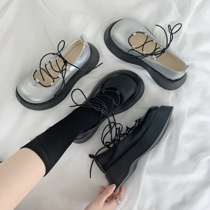 Туфли DLEK женские на платформе, туфли-лодочки ручной работы с перекрестной шнуровкой, дышащие лоферы с круглым носком, Y2K