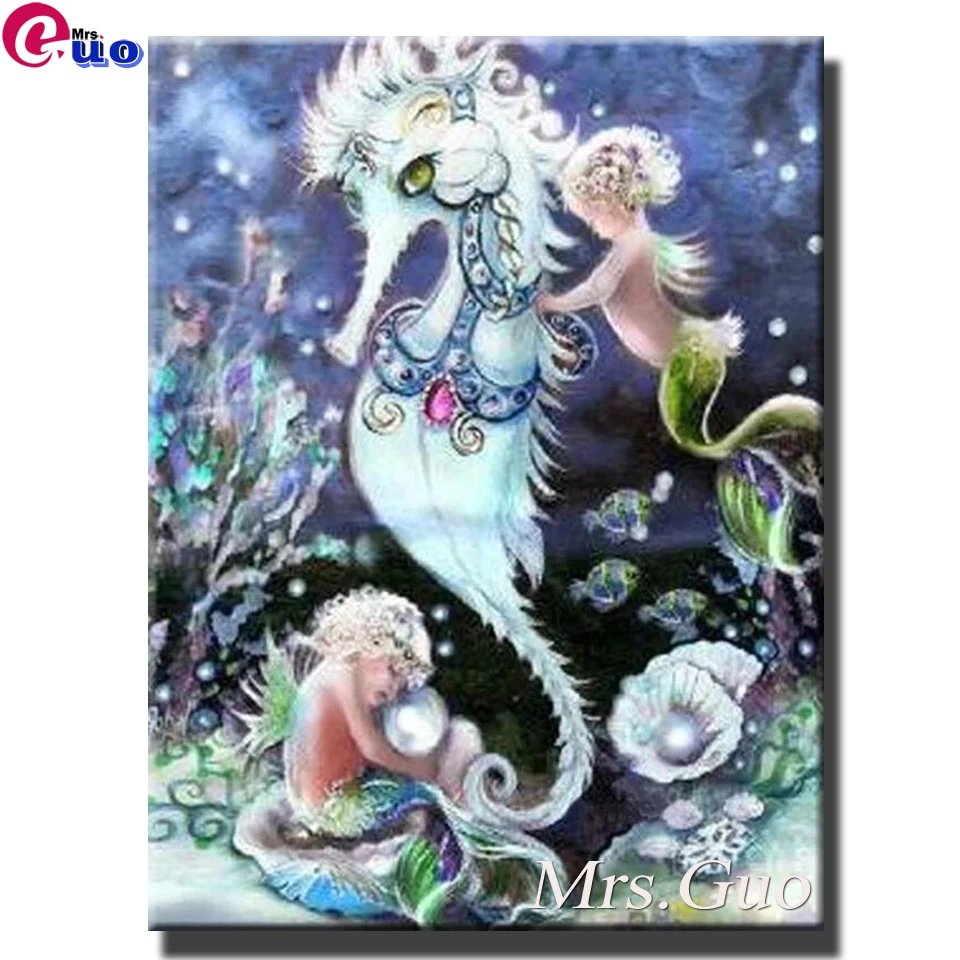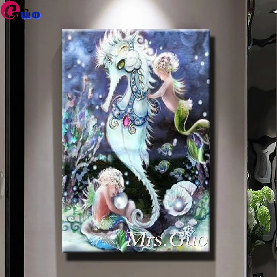 Морская жизнь серии 5D Алмазная мозаика камни в форме ромба круглый вышивка стразами, Русалка с формой гиппокампа, алмазов картина Стразы подарок