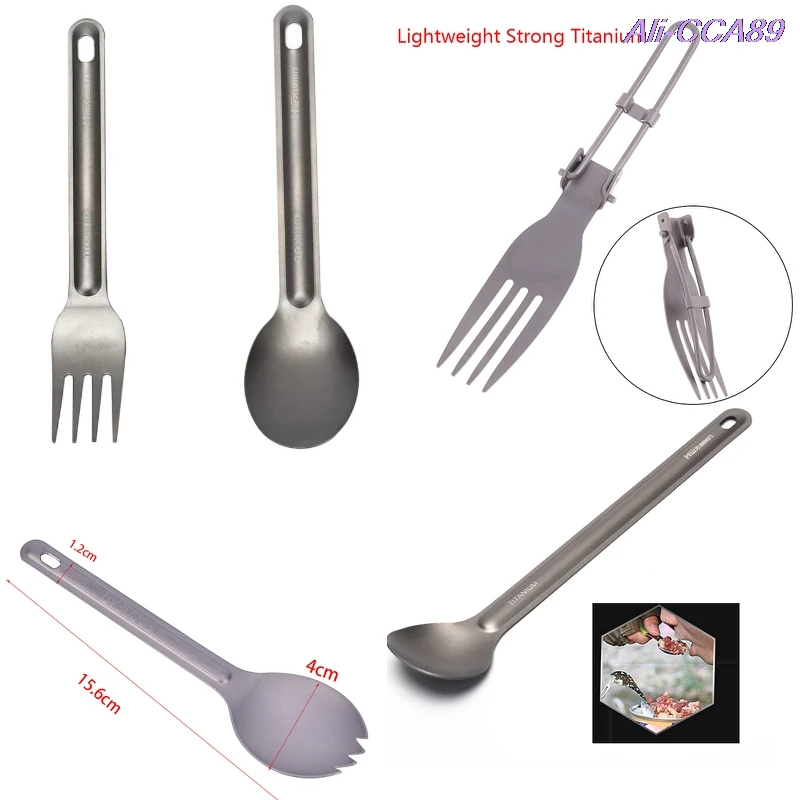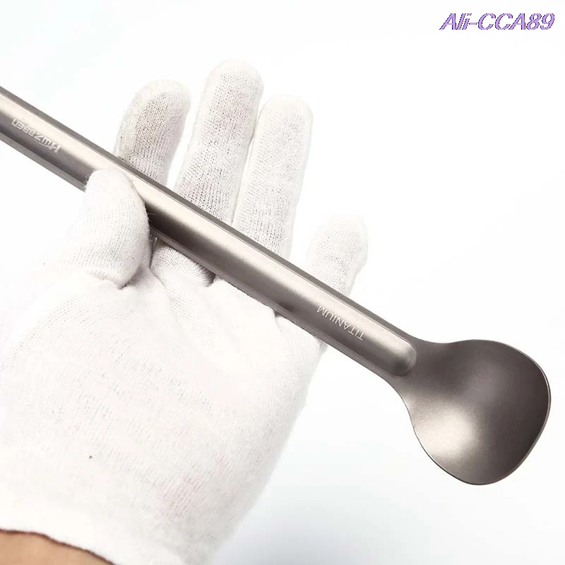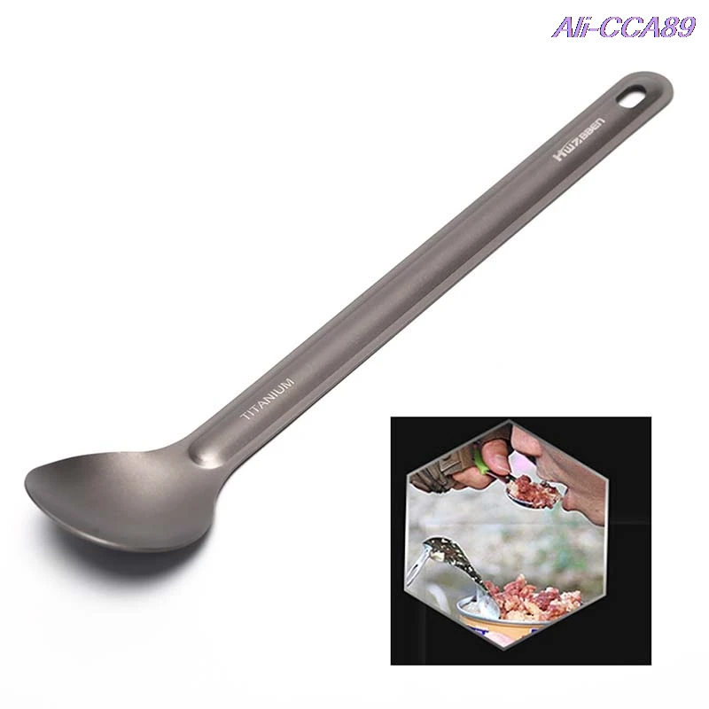 1 шт. Титановая Ложка, ложка для кемпинга, посуда для улицы, Титановая Ложка с длинной ручкой, соломинка из нержавеющей стали