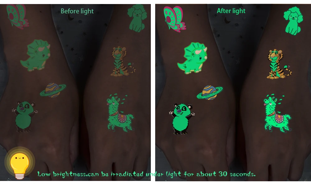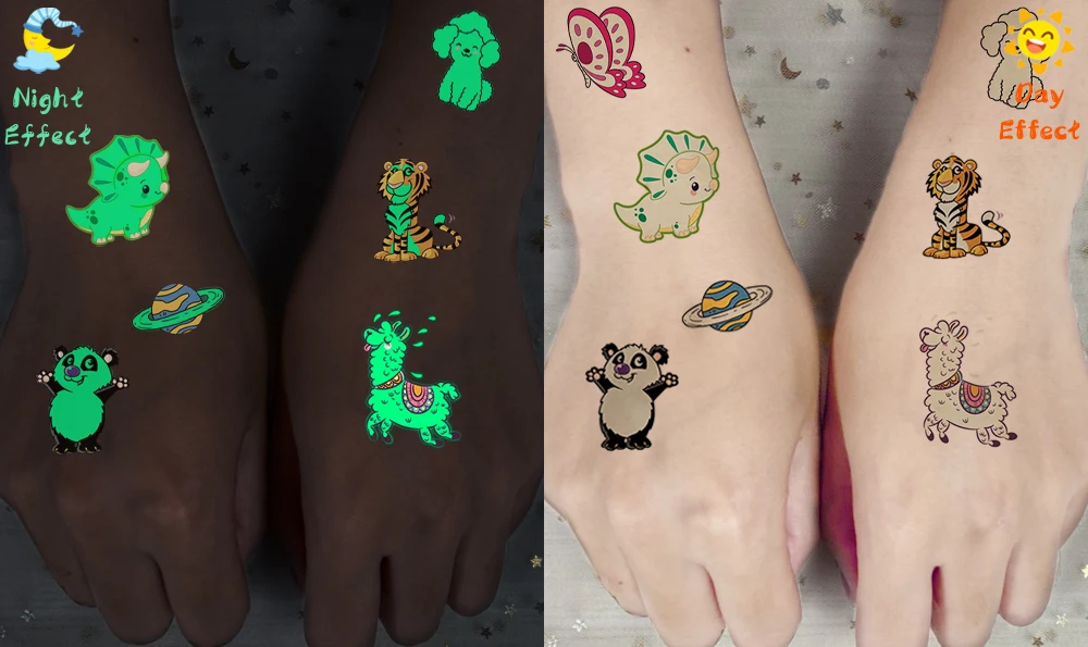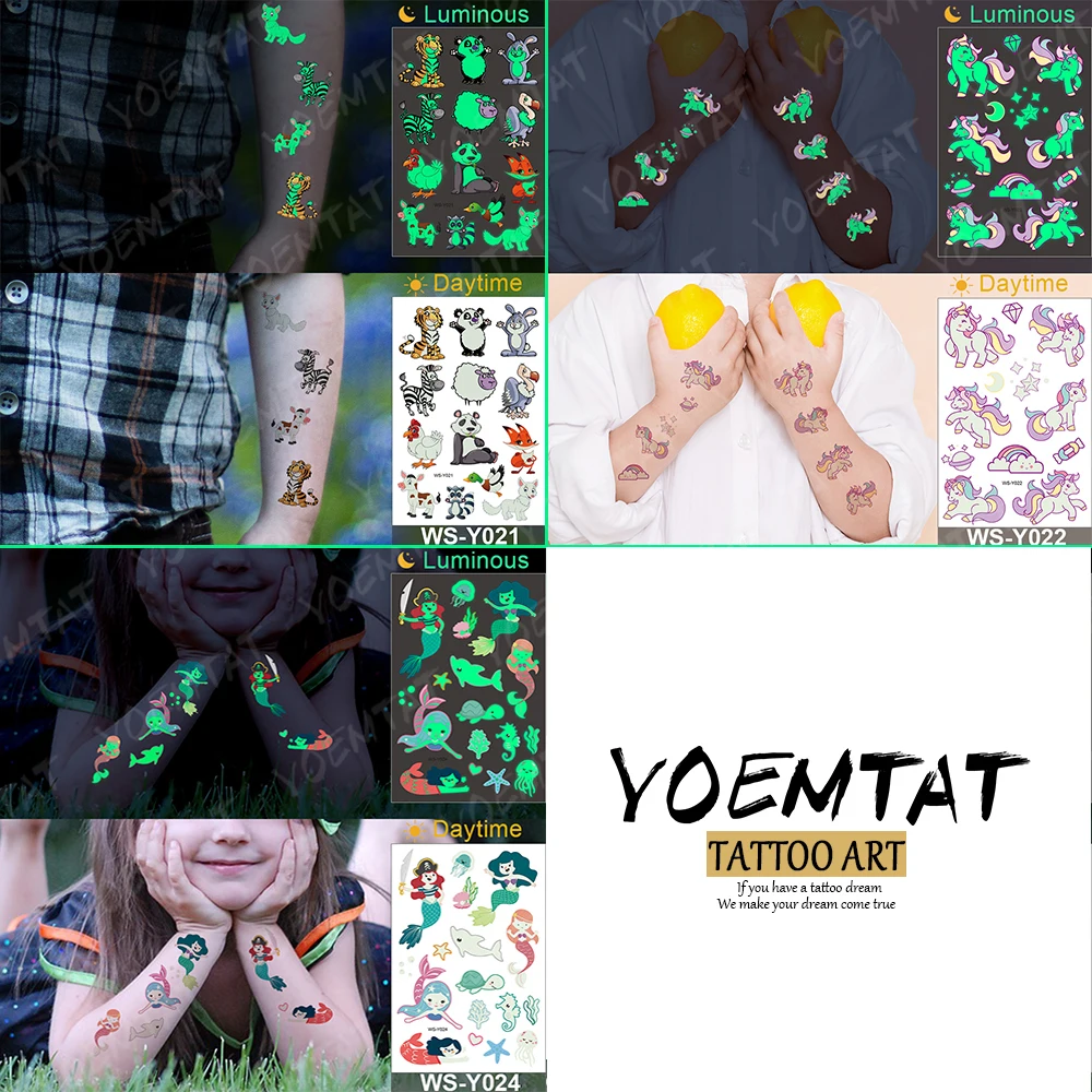 Водостойкая Временная тату-наклейка, мультяшный детский светящийся цветок, Бабочка, девушка, тату с животными, светящийся флэш-тату