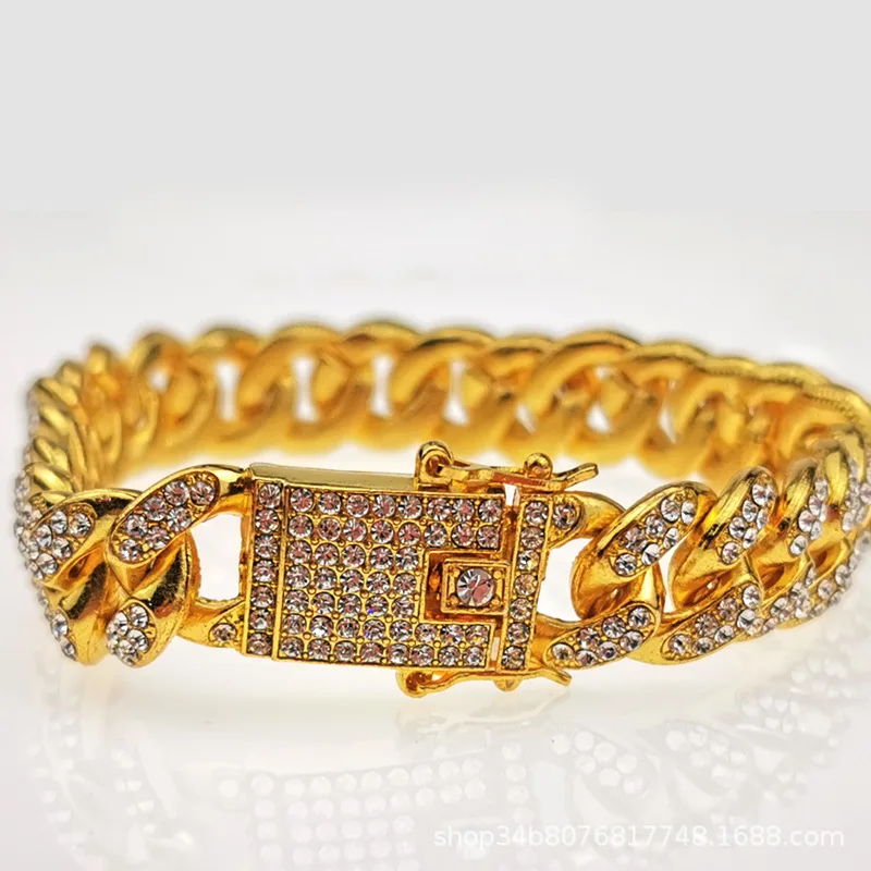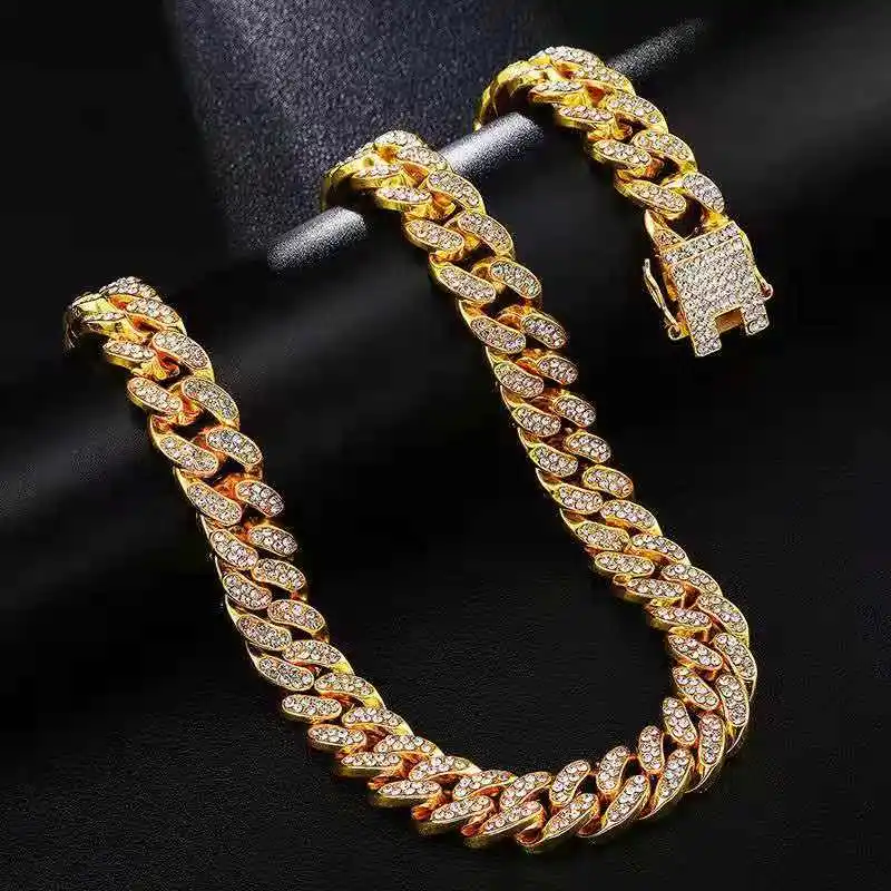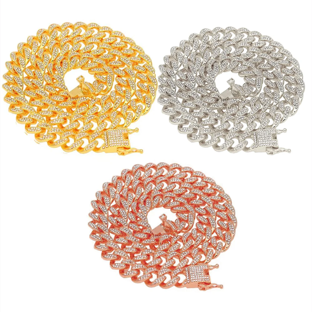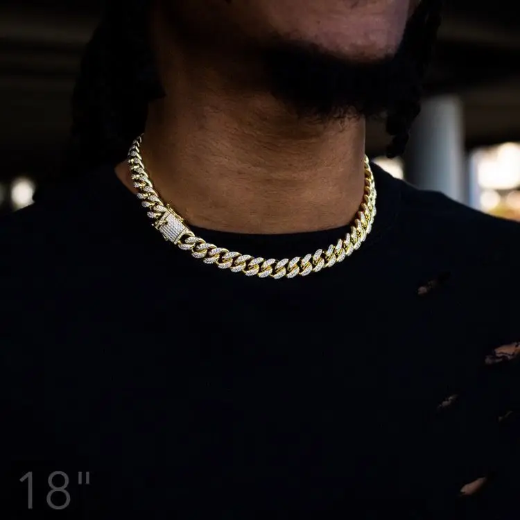 Цепочка Из кубинской панцирной цепи Майами для мужчин и женщин, украшение под золото 12 мм с фианитами, сверкающее ожерелье в стиле хип-хоп, браслет для женщин