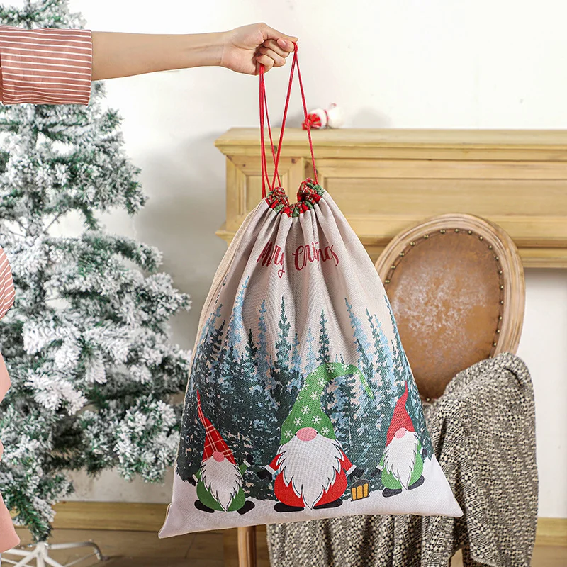 Рождественский подарок, большая сумка, милый Рождественский льняной...