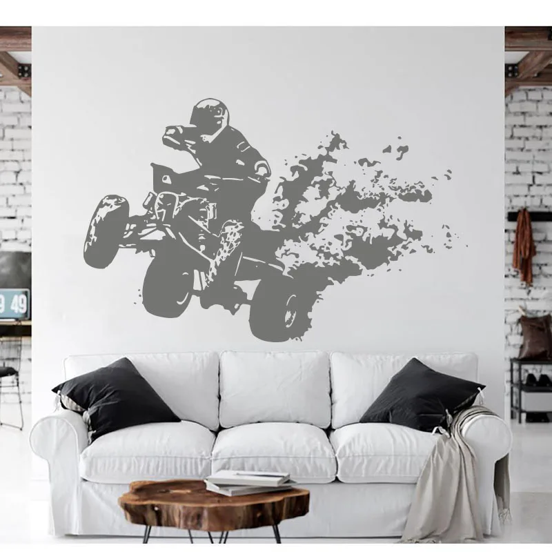 Большой Экстремальный квадроцикл мотоциклист стикер на стену детская комната игровая комната квадроцикл четыре Wheeler гоночный велосипед наклейка на стену спальня винил