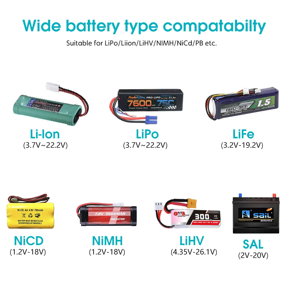 Suitable Battery typeLilon/LiPo/LiFe/LiHV/NiCd/NiMH/PB