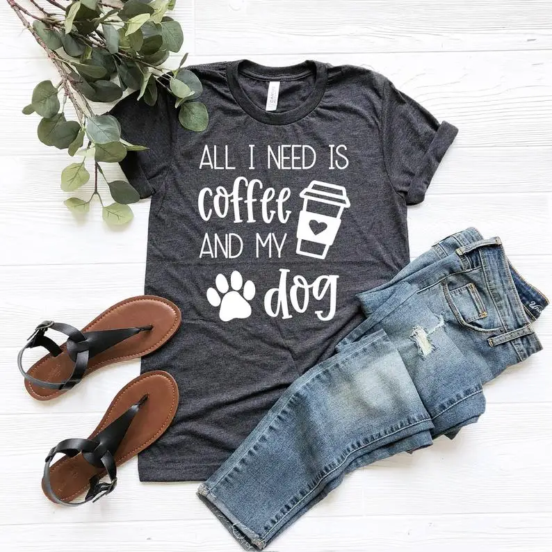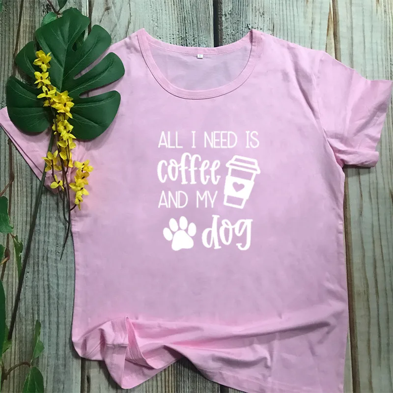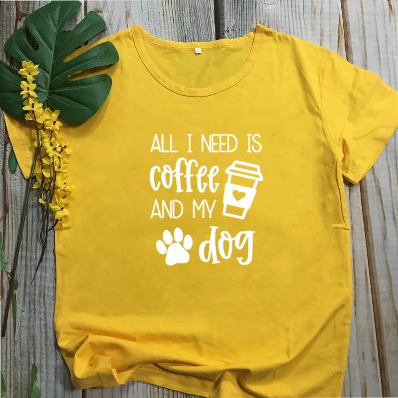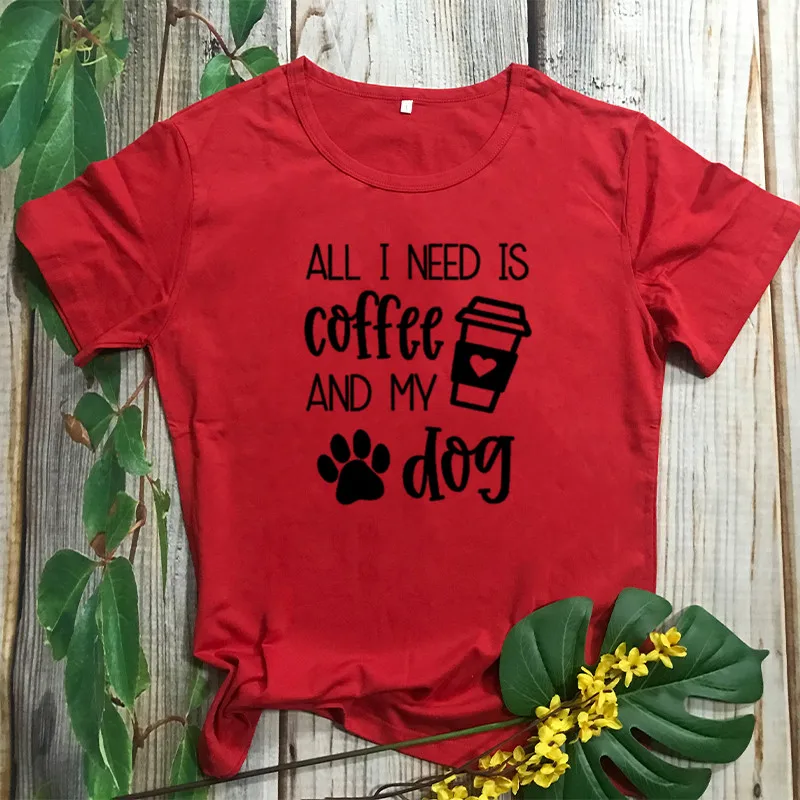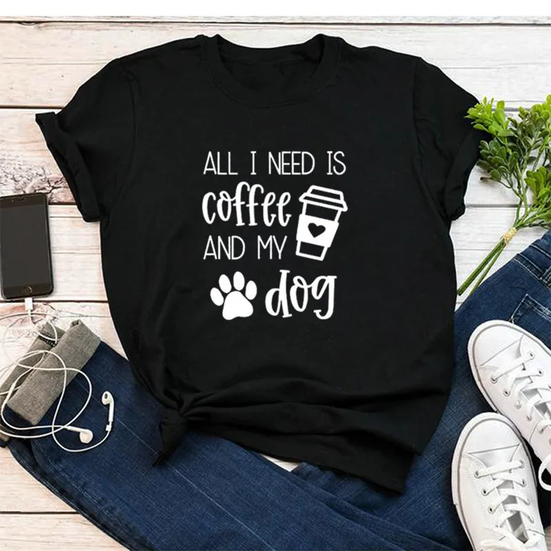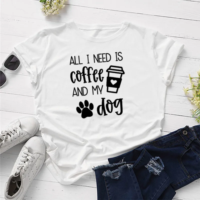All I Need Is Кофе и свою собаку моей рубашке с короткими рукавами 100% хлопковая Футболка со смешным буквенным принтом Графический с круглым вырезом Футболка Собака Мама мамочка женский