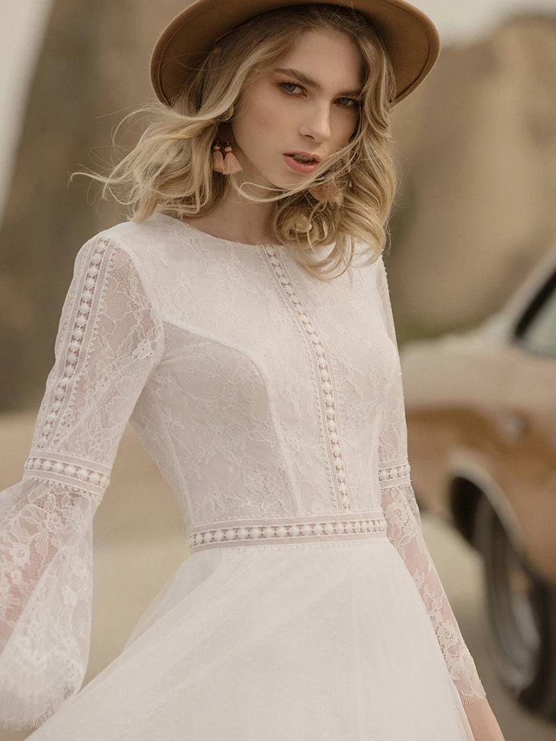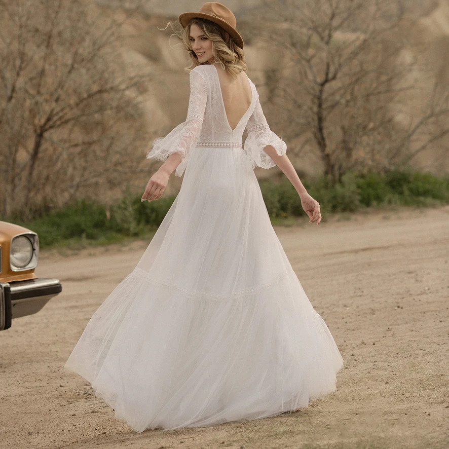 Размера плюс пляжные фатиновая одежда с длинным рукавом свадебные платья Кружево индивидуальный заказ пол Длина с тюлевой юбкой Макси церемонии мягкие свадебные платья
