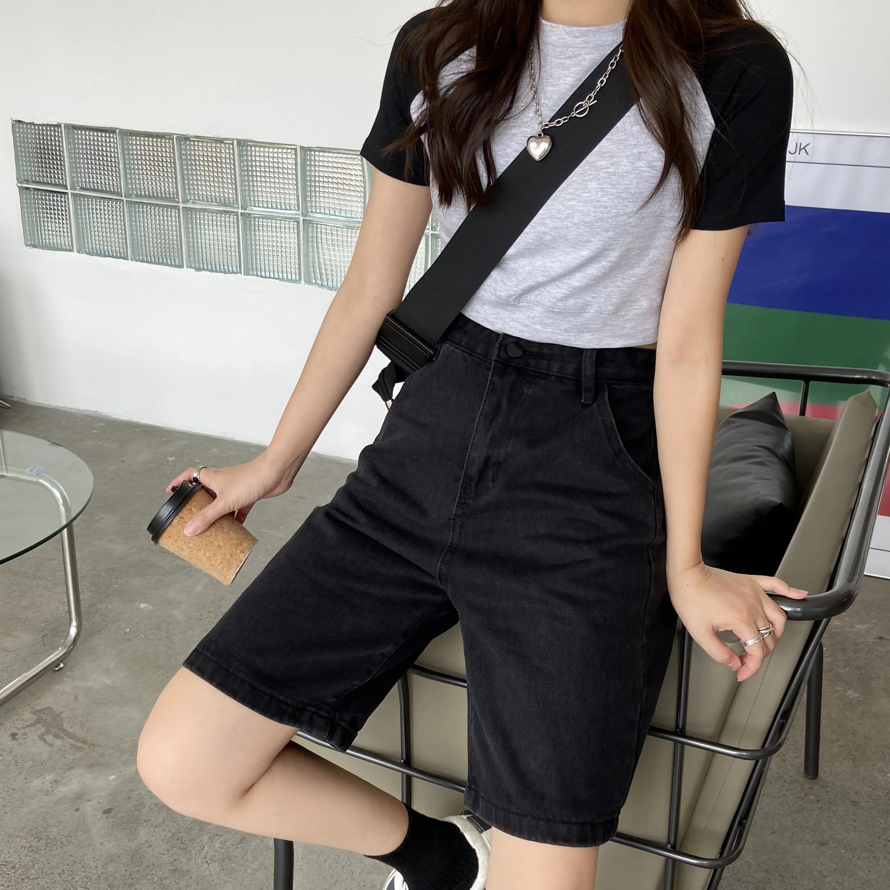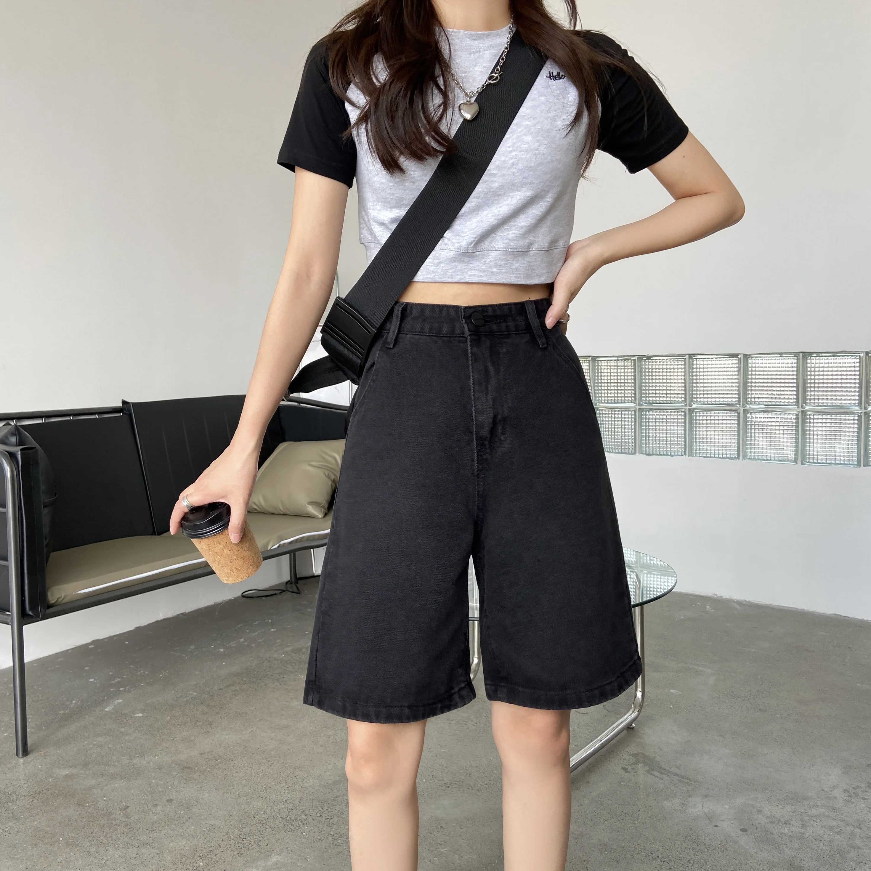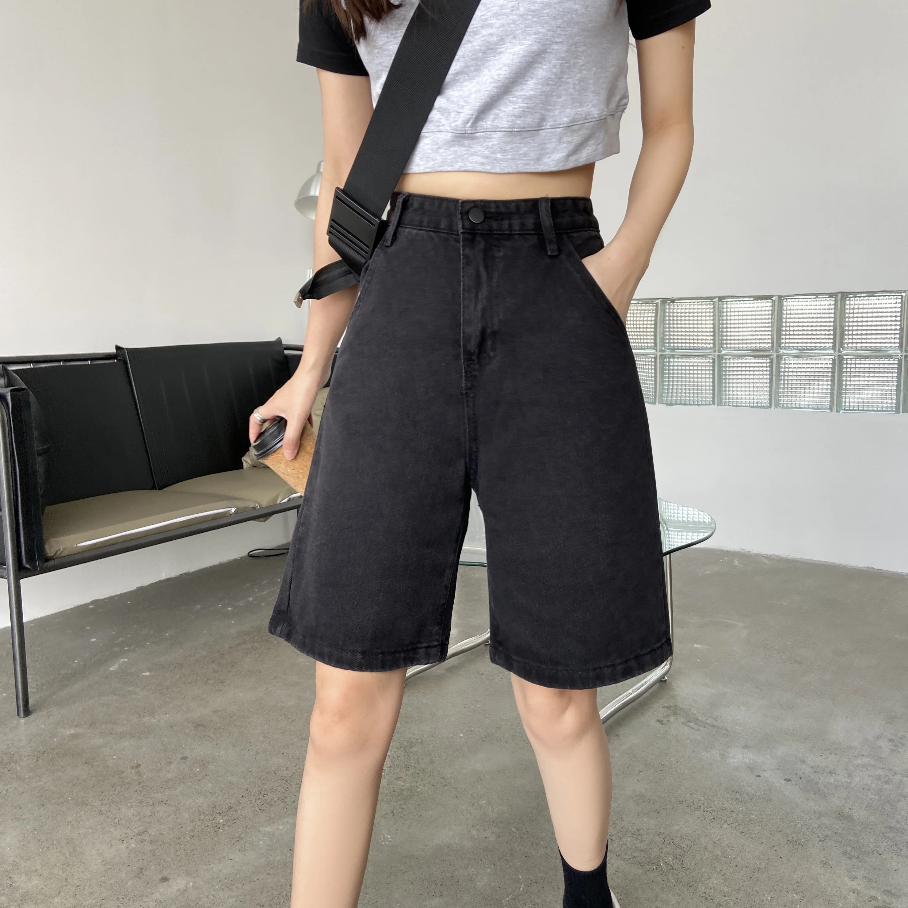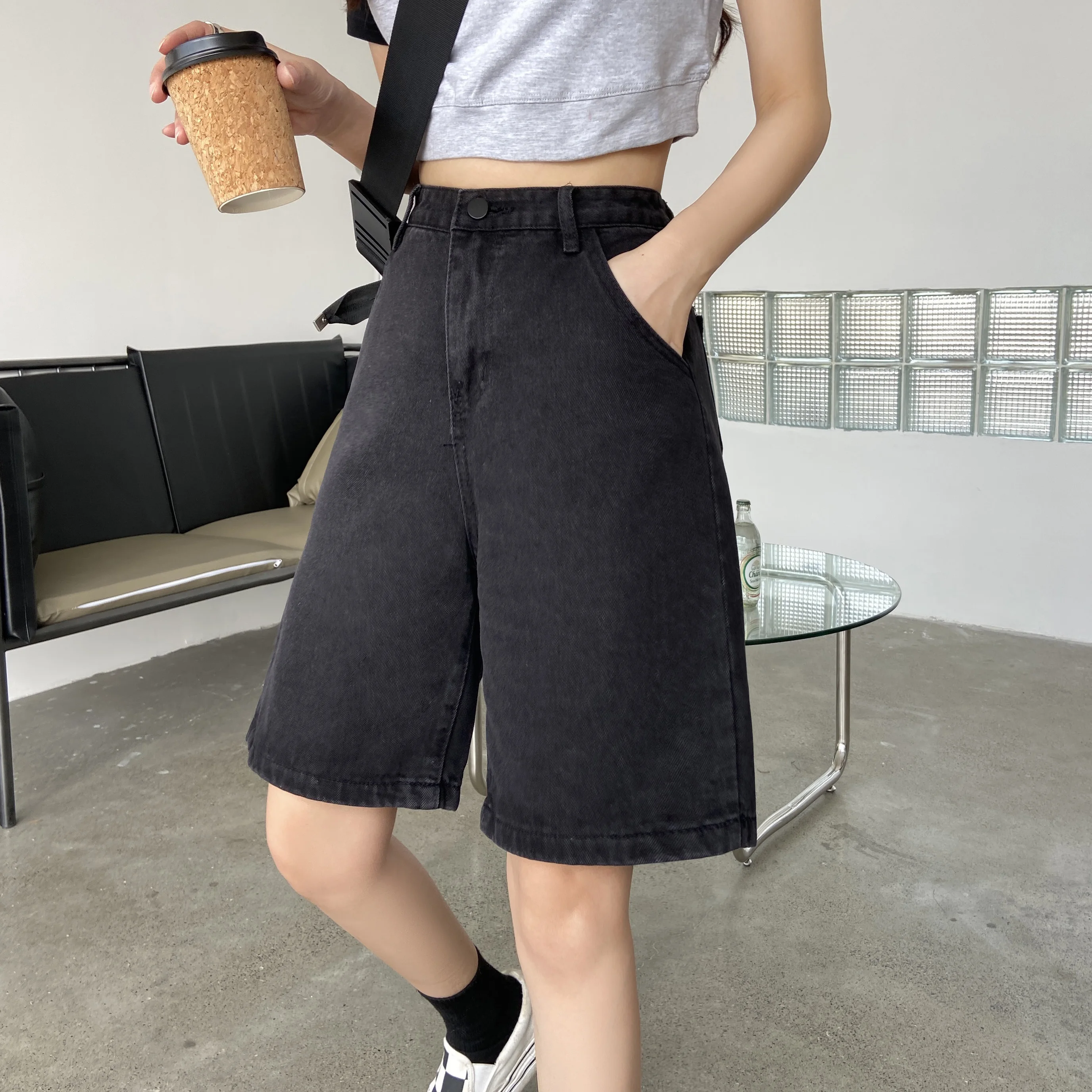 FMFSSOM 2022 летние женские свободные широкие черные джинсовые шорт...