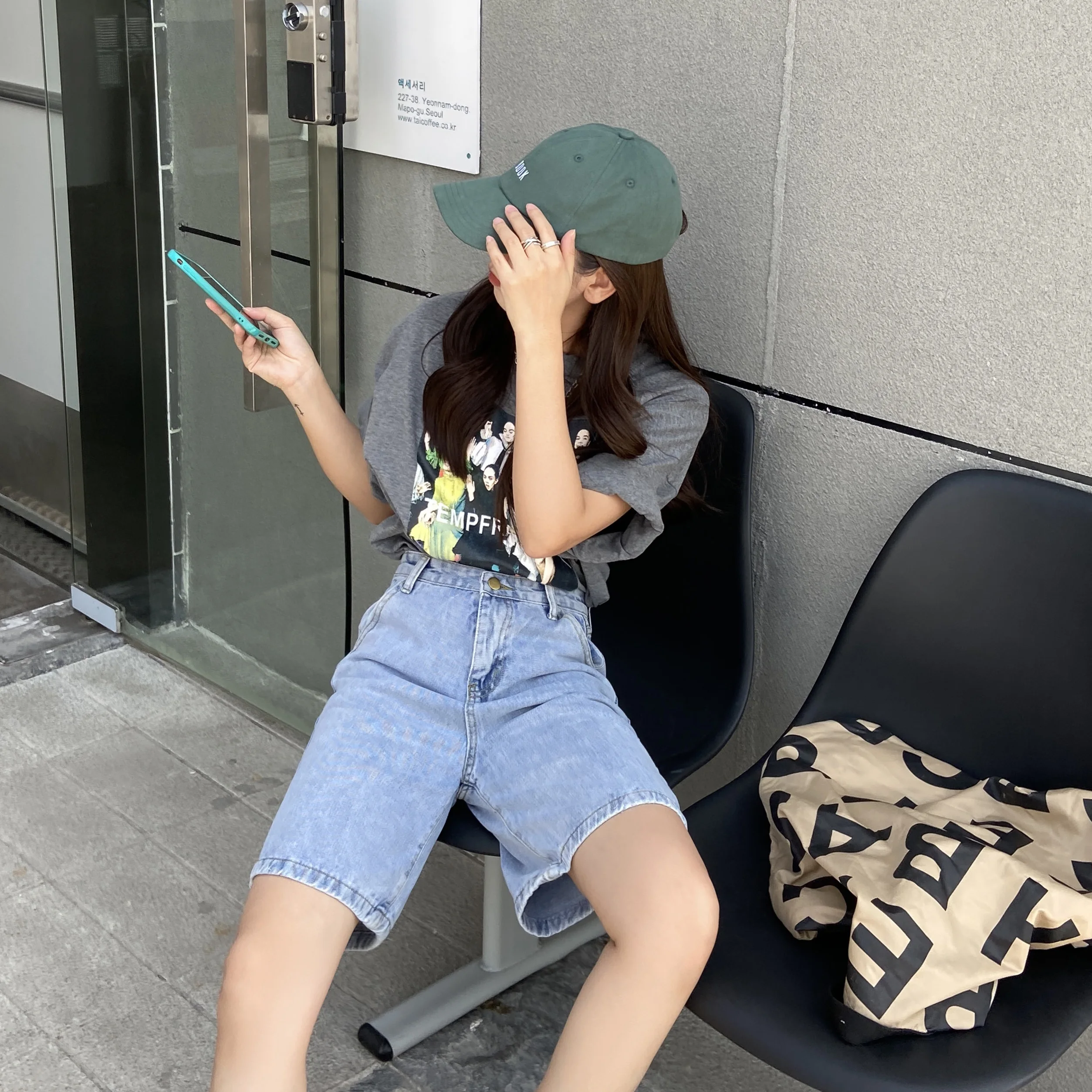 Женские однотонные джинсовые шорты-бермуды в уличном стиле, новинка...