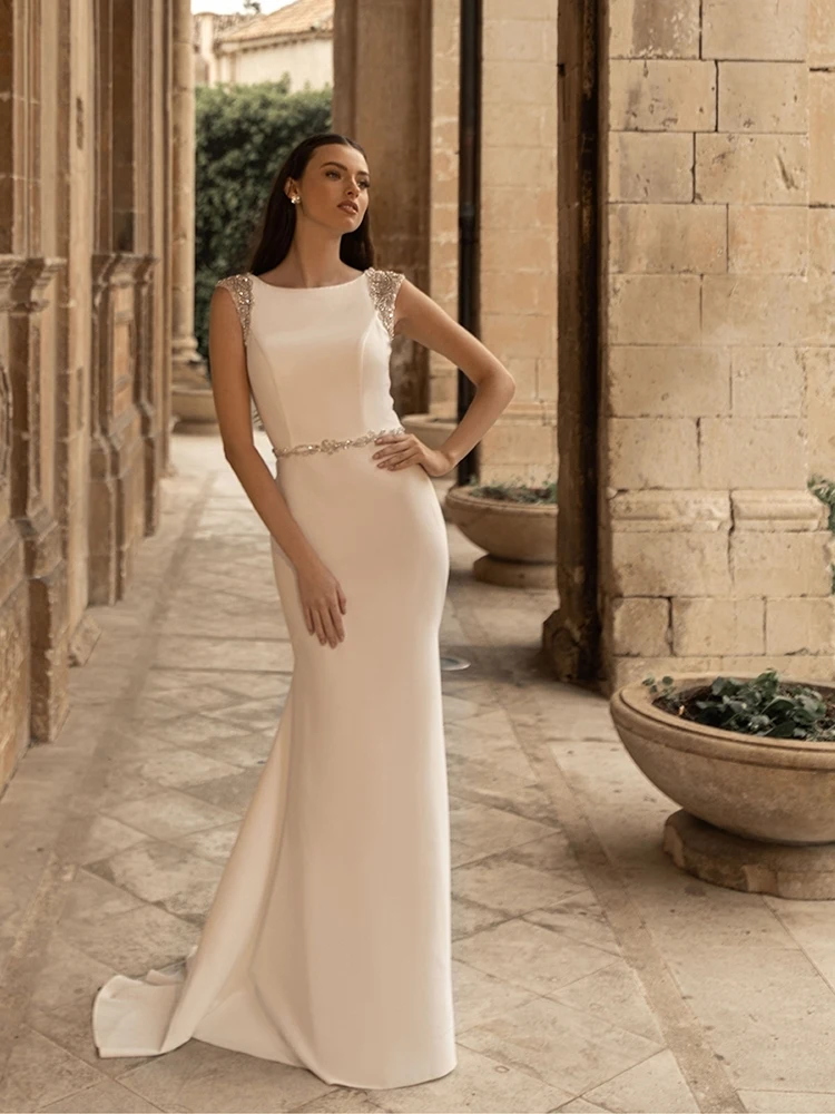 Женское свадебное платье с юбкой годе, элегантное платье со шлейфом без рукавов, украшенное кристаллами и бусинами, 2021