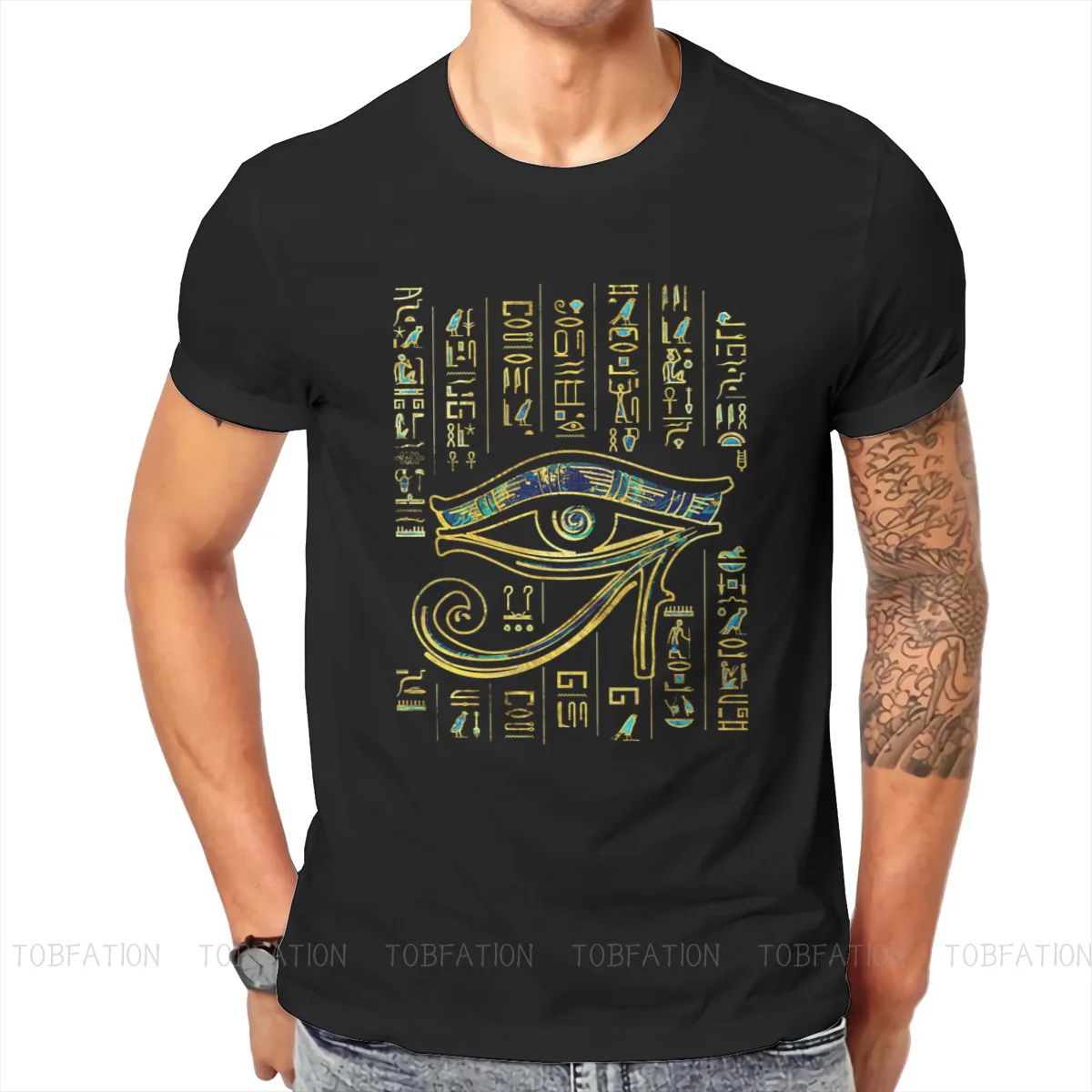 Футболка мужская из 100% хлопка с изображением глаз Гора и иероглифов, хипстерские Топы 6XL