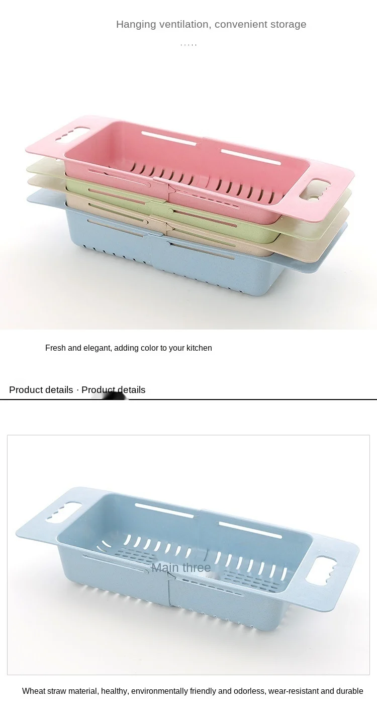 Введение: выдвижная корзина для слива, элегантный внешний вид, пшеничная солома + полипропиленовый материал,