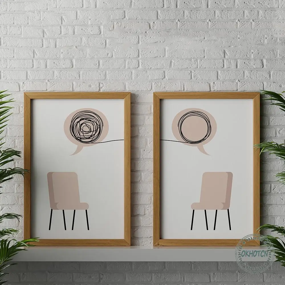 Настенный постер бежевого цвета с изображением стула, цифровая печать, Картина на холсте, скандинавские картины для психололога, офиса, домашнего декора
