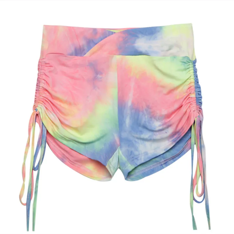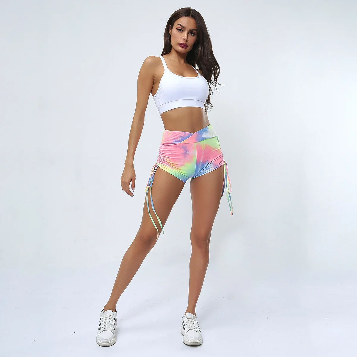 Женские шорты для йоги, разноцветные, со шнуровкой, с завязками, со средней талией, для бега, фитнеса, велоспорта