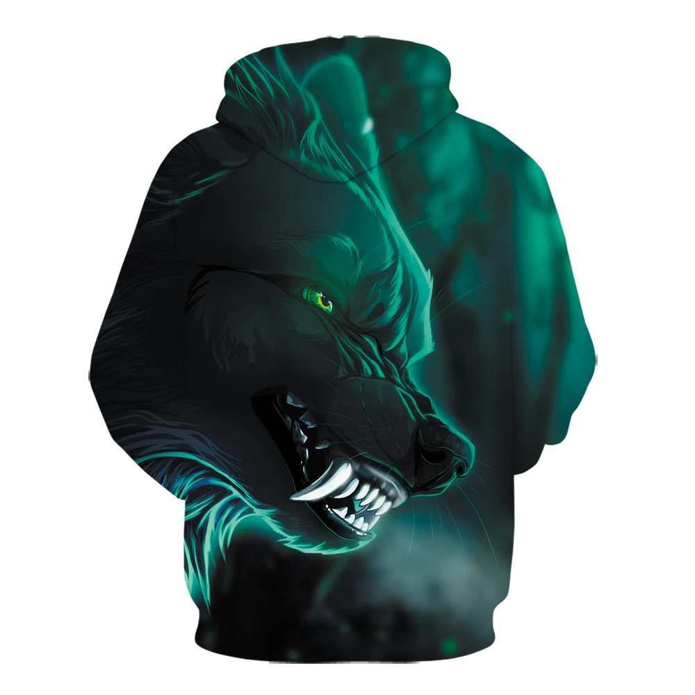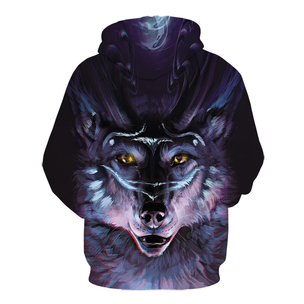 Толстовка Мужскаяженская оверсайз с капюшоном и 3D-принтом волка