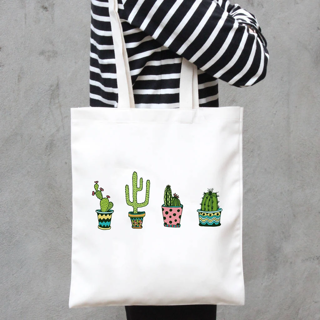 Кактуса растений сумка женская Холщовая Хозяйственная сумки Дорожная сумка Графический милый складный тотализатор большой Ёмкость