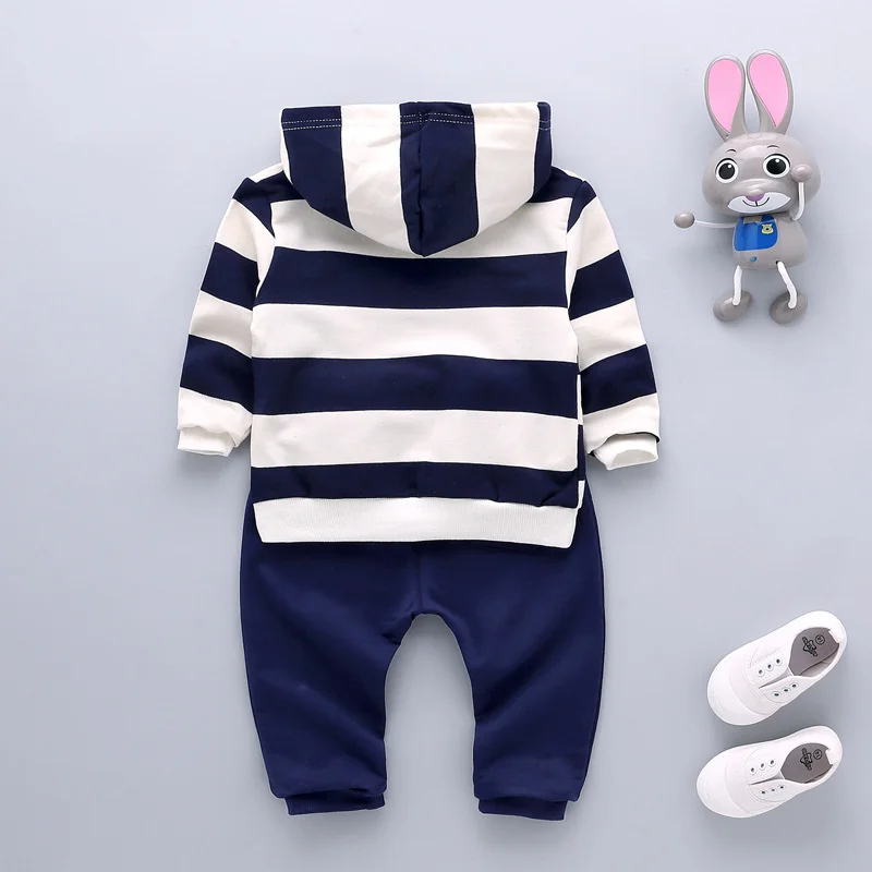 Комплект одежды для мальчиков, весенне-Осенняя детская одежда в полоску с капюшоном, комплект из 2 предметов, свитшот для малышей, От 1 до 4 лет детский спортивный костюм