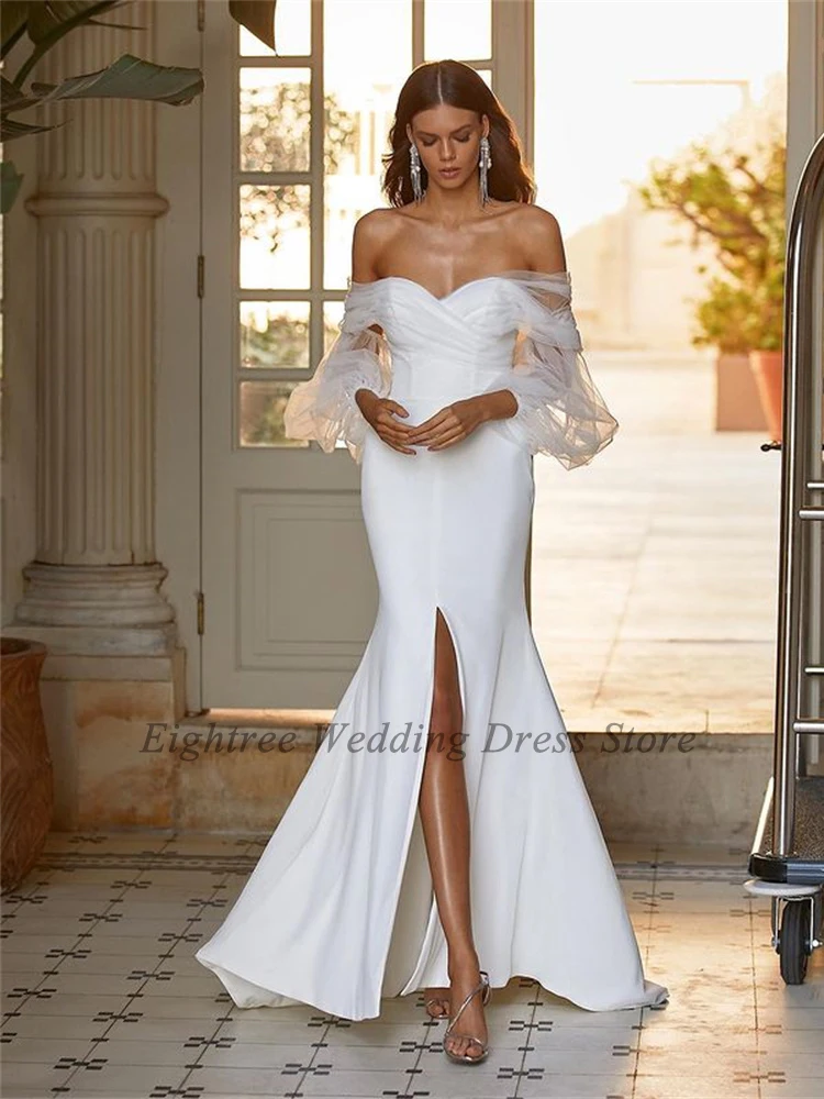 Кружевное свадебное платье Thinyfull, длинное платье с открытыми плечами и разрезом спереди, 2021