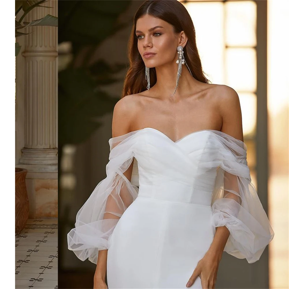 Мягкие длинные пляжные свадебные платья с открытыми плечами с пышны...