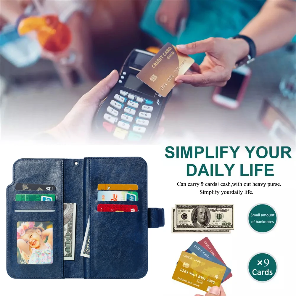 1. Особенности: Роскошный чехол для телефона с отделением для карт и подставкой 2. Материал: изготовлен из высококачественной искусственной кожи + мягкого ТПУ 3. Функция: противоскользящая, противоотпечатков пальцев, Противоударная, Пылезащитная, Противоударная, грязеотталкивающая, устойчивая к царапинам.