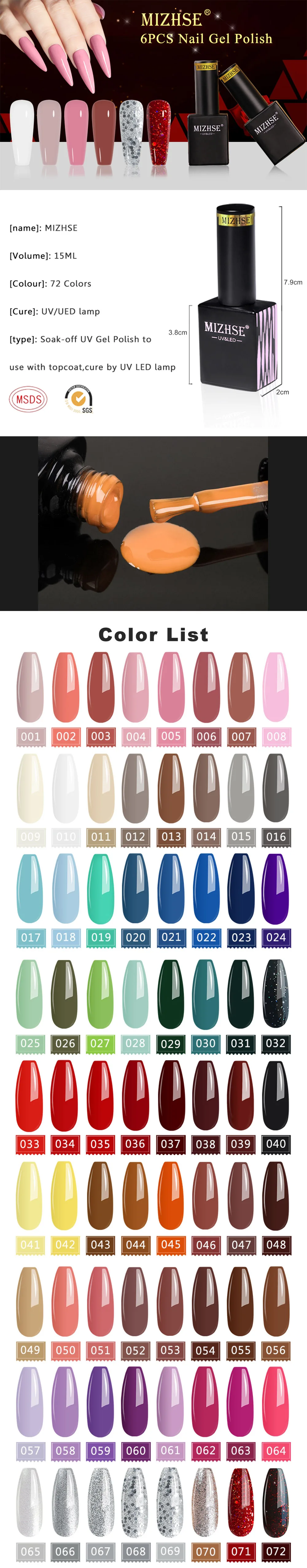 MIZHSE 15 мл Гель-лак для ногтей Перманентный лак Vernis гибридный Цвет отмачиваемый Гель-лак для ногтей для маникюра