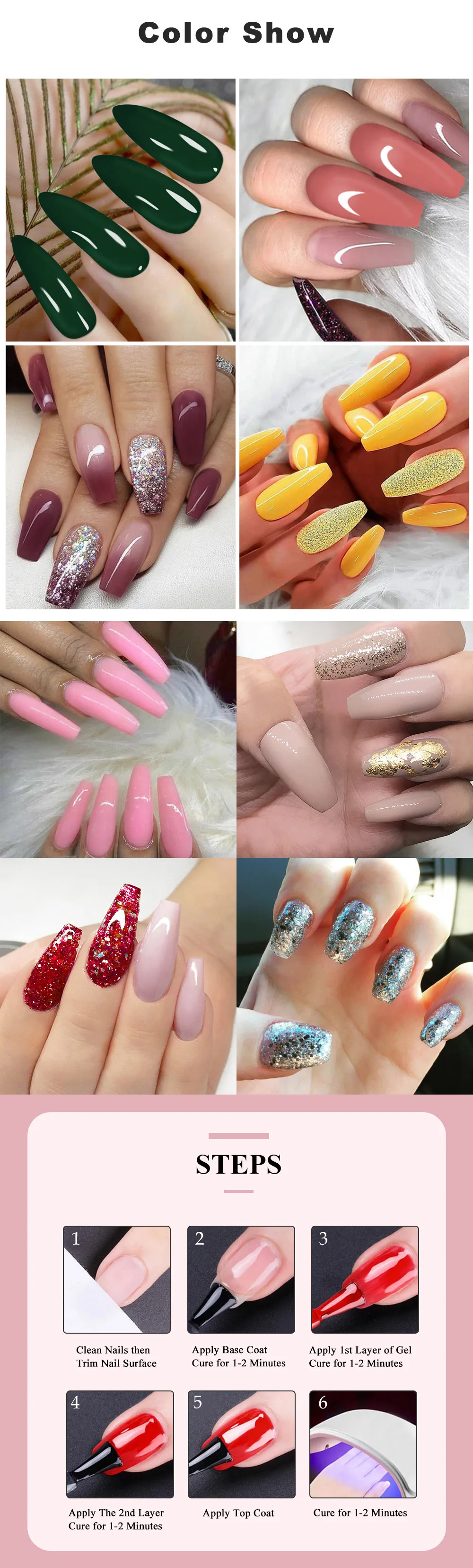 Шаг использования:Шаг 1. Очистите ногти, затем обрежьте поверхность ногтей как обычный процесс маникюра.?Шаг 2. Полностью встряхните один шаг геля, он может сделать цвет лака сбалансированным. (ВАЖНО)Шаг 3. Сначала нанесите базовый слой, который может сделать лак длительным, высушить УФ-лампой или светодиодный лампой. (Необходимо)Шаг 4. Нанесите лак напрямую, вылечите УФ-лампой в течение 2-3 минут или вылечите светодиодный светильник в течение 60 секунд; При высыхании нанесите второй слой и снова закрепите УФ-лампой или светодиодный светильник.Шаг 5. Пальто со съемным верхним покрытием, которое может сделать цвет более сияющим, а затем излечиваться УФ-лампой или светодиодный лампой.Шаг 6. Удалите липкую поверхность с помощью хлопка, смоченного моющим средством.
