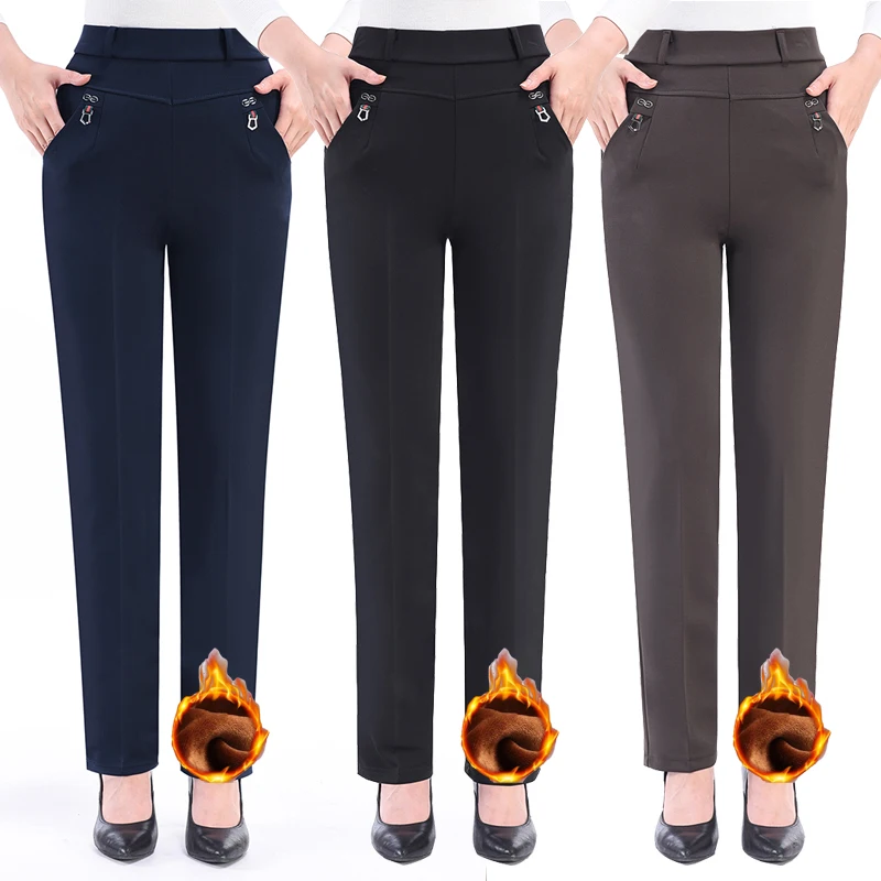Брюки-карандаш женские, зимние, теплые, прямые, с вельветовой подкладкой, с высокой талией, большие размеры, 5Xl, размера плюс
