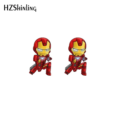 Серьги-гвоздики из акриловой смолы с мультяшным принтом Мстители Железный человек ювелирные изделия для ушей из эпоксидной смолы