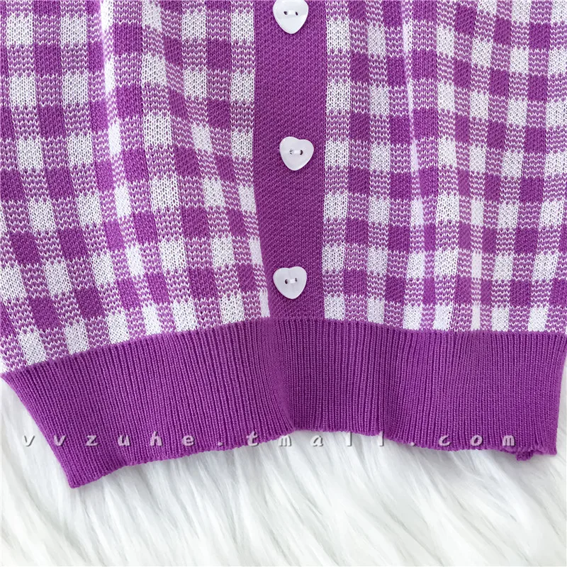 HELIAR Женские клетчатые Короткие топы на пуговицах, милые вязаные ...