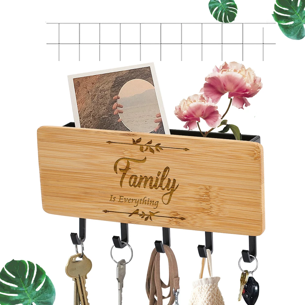 Креативная бамбуковая подвеска для ключей с гравировкой букв, 5 крючков