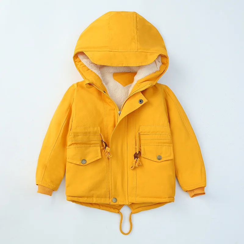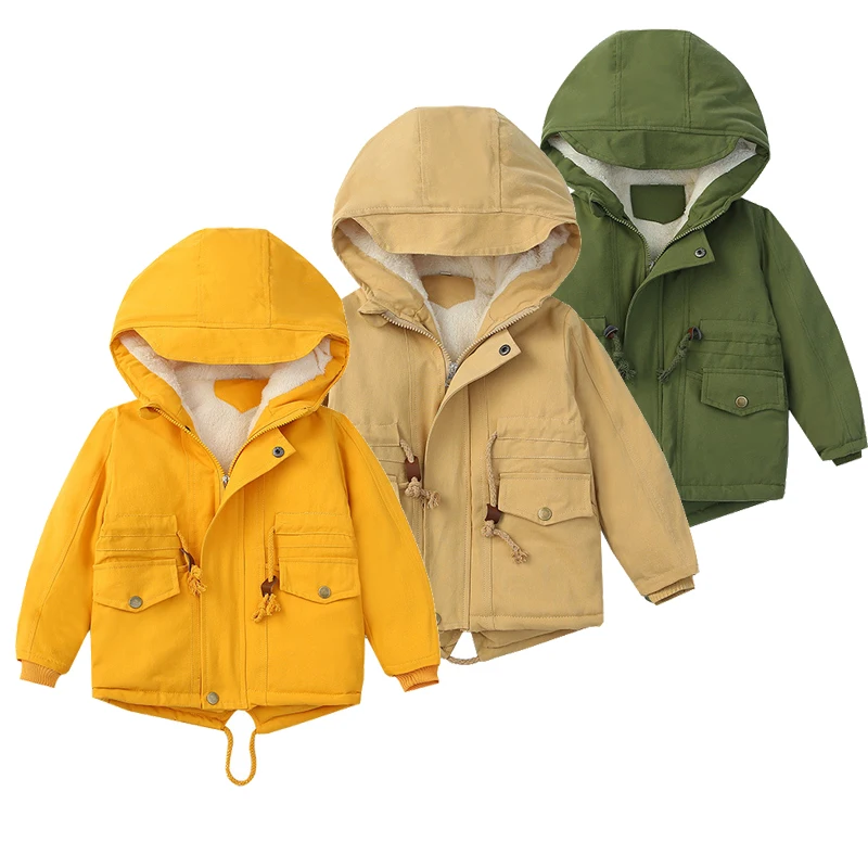Новый Зимний теплый жакет для девочек; Детская куртка с капюшоном для мальчиков верхняя одежда для детей утепленная куртка с плюшевой подкладкой От 3 до 8 лет, детская одежда