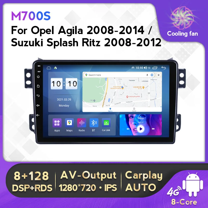 Автомобильный радиоприемник, 9 дюймов, IPS DSP, Android 11, 6 + 128G, стерео, для Opel Agila, Suzuki, Splash Ritz, GPS-навигация, BT, 4G, Lte, Wi-Fi, SWC