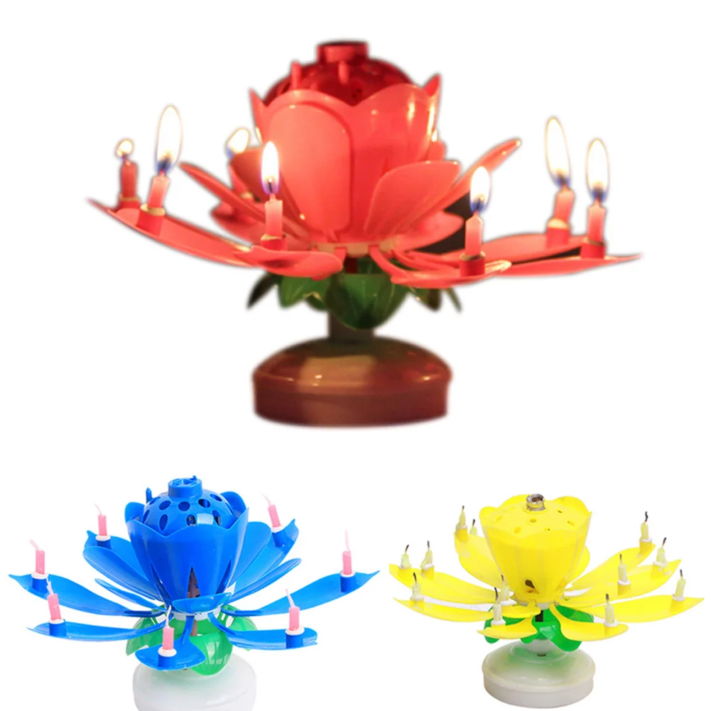 Художественная Музыкальная свеча цветок лотоса с днем рождения вращающиеся огни 8/14 свечи лампы Декор Товары в наличии