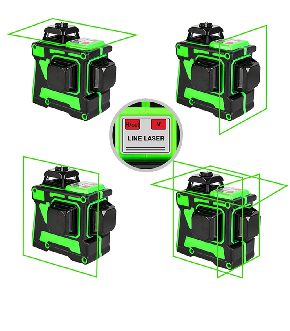 12 линий 3D зеленый лазерный уровень Горизонтальные и вертикальные поперечные линии с автоматическим самовыравниванием, в помещении и на улице