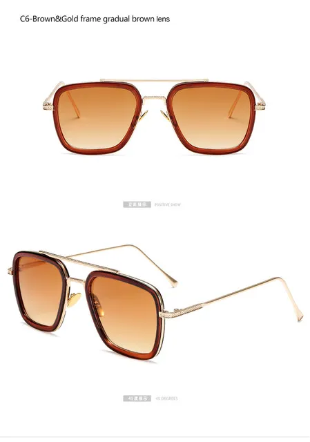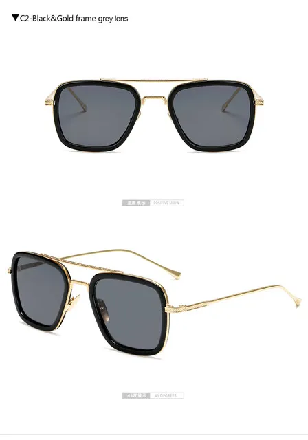 Тони Старк Стиль для женщин солнцезащитные очки Мужские квадратные, фирменный дизайн, солнцезащитные очки, роскошные модные солнцезащитные очки в стиле ретро с изображением Железного человека, Oculos de