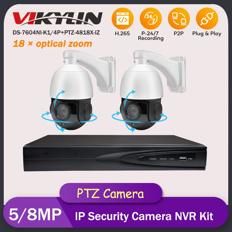 Hikvision 4MP CCTV Kit PTZ 4CH 4K NVR DS7604NI-K14P Mini PTZ DS-2DE...