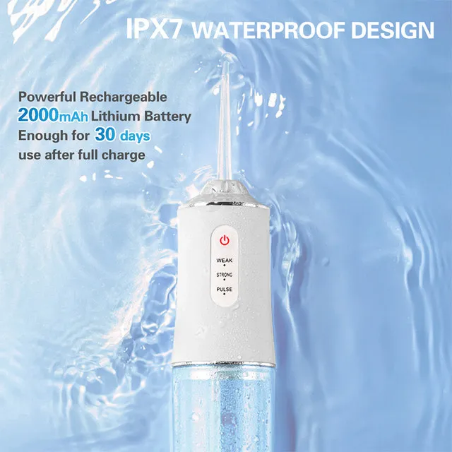 Водонепроницаемость: IPX7 двойной водонепроницаемыйРезервуар для воды: 220 мл открытый резервуар для водыРежим работы: нормальный, мягкий, импульсныйЧастота импульса: 1200-1600 раз/минДавление воды: 30-130PSIАккумулятор: литиевая батарея 1200 мАч