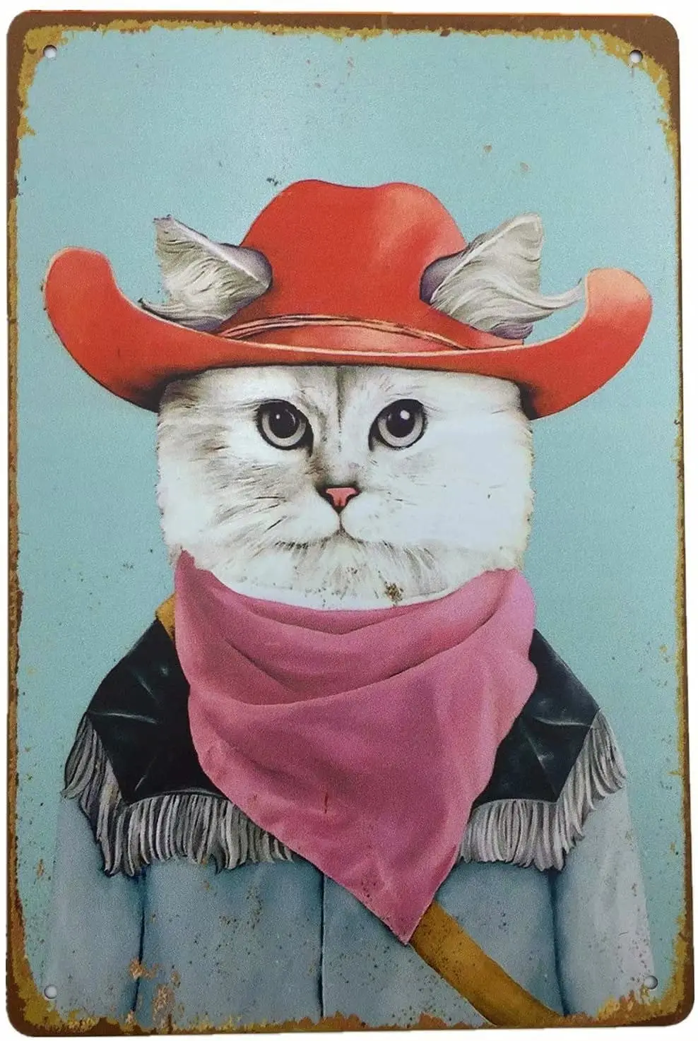 Металлическая вывеска, ковбойский Кот, художественный плакат, домашний интерьер, гостиная, спальня, настенное украшение, ретро квадратный металлический знак 8x12 дюймов