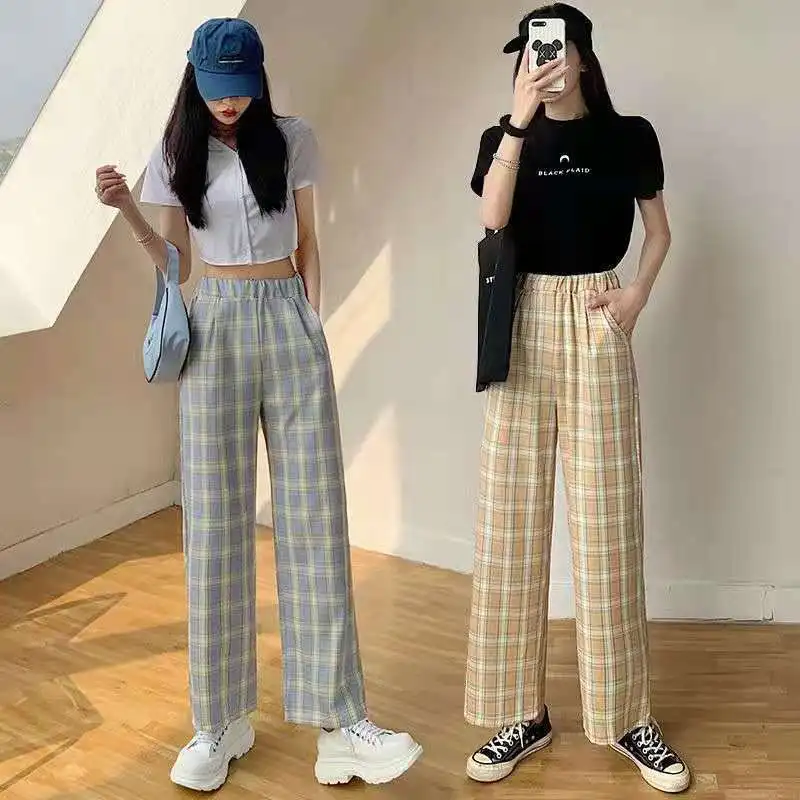 Размера плюс, новые корейские Стиль штаны в клетку; Сезон весна; Мо...