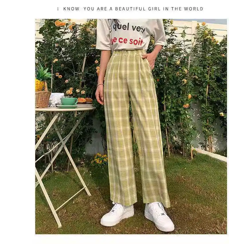 Брюки женские в клетку, с высокой талией, весенне-осенние, большие, 2021