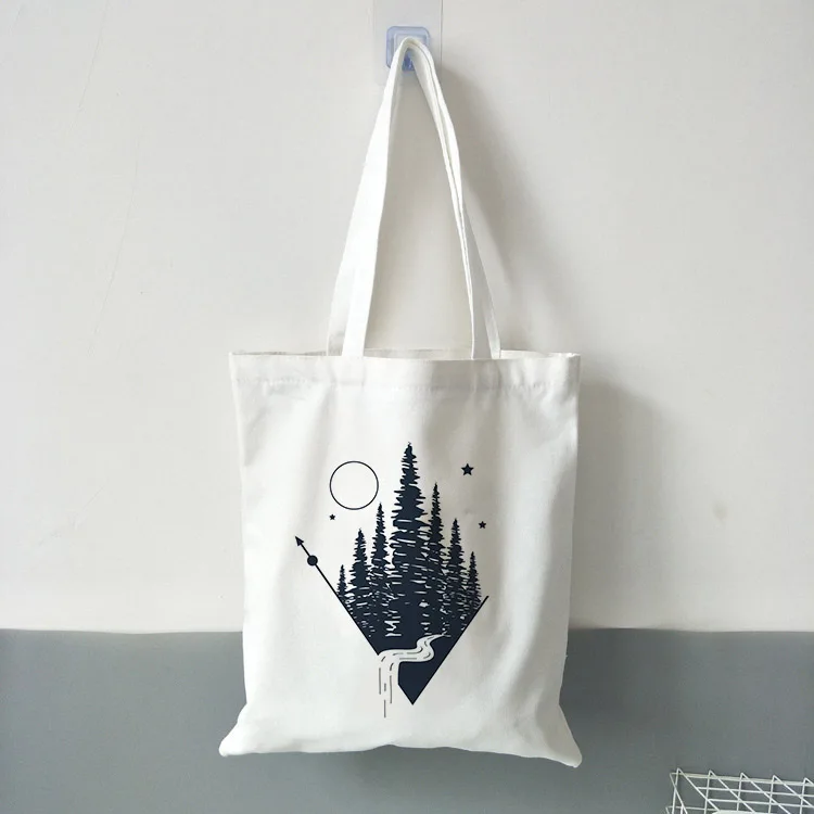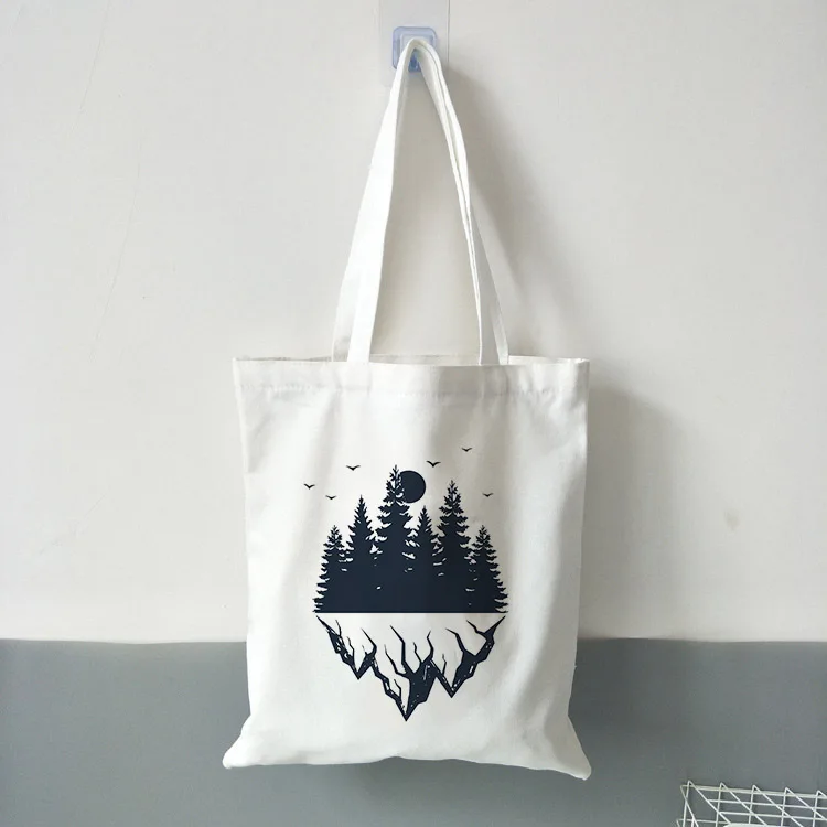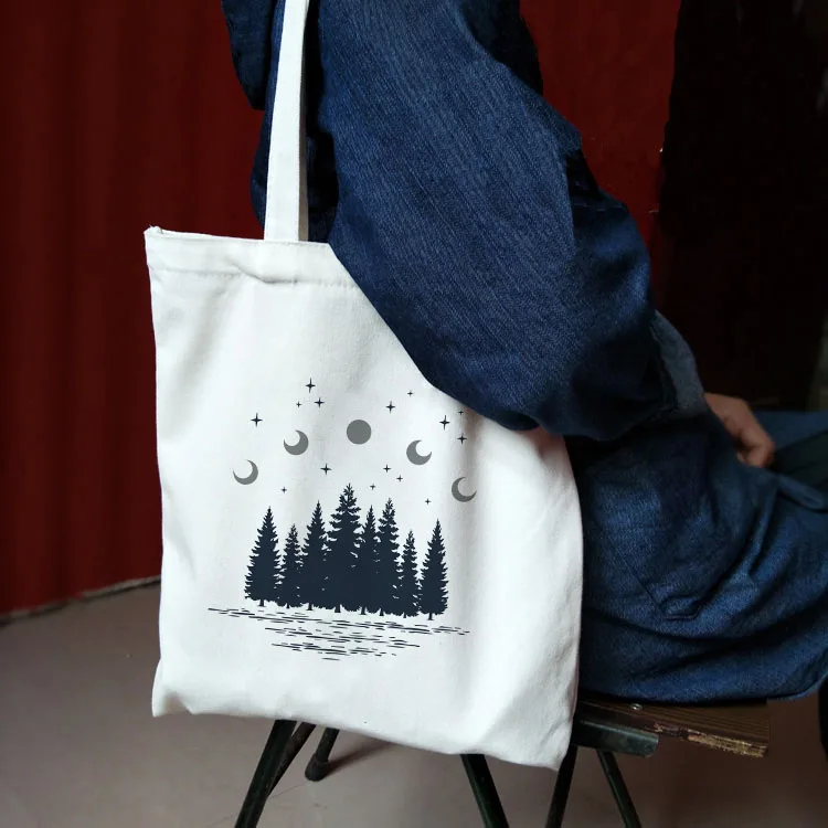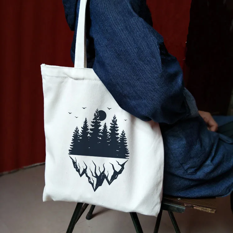 Женская тканевая сумка-тоут, Экологически чистая многоразовая Сумочка для покупок с принтом темного леса, чемоданчик на плечо для путешествий