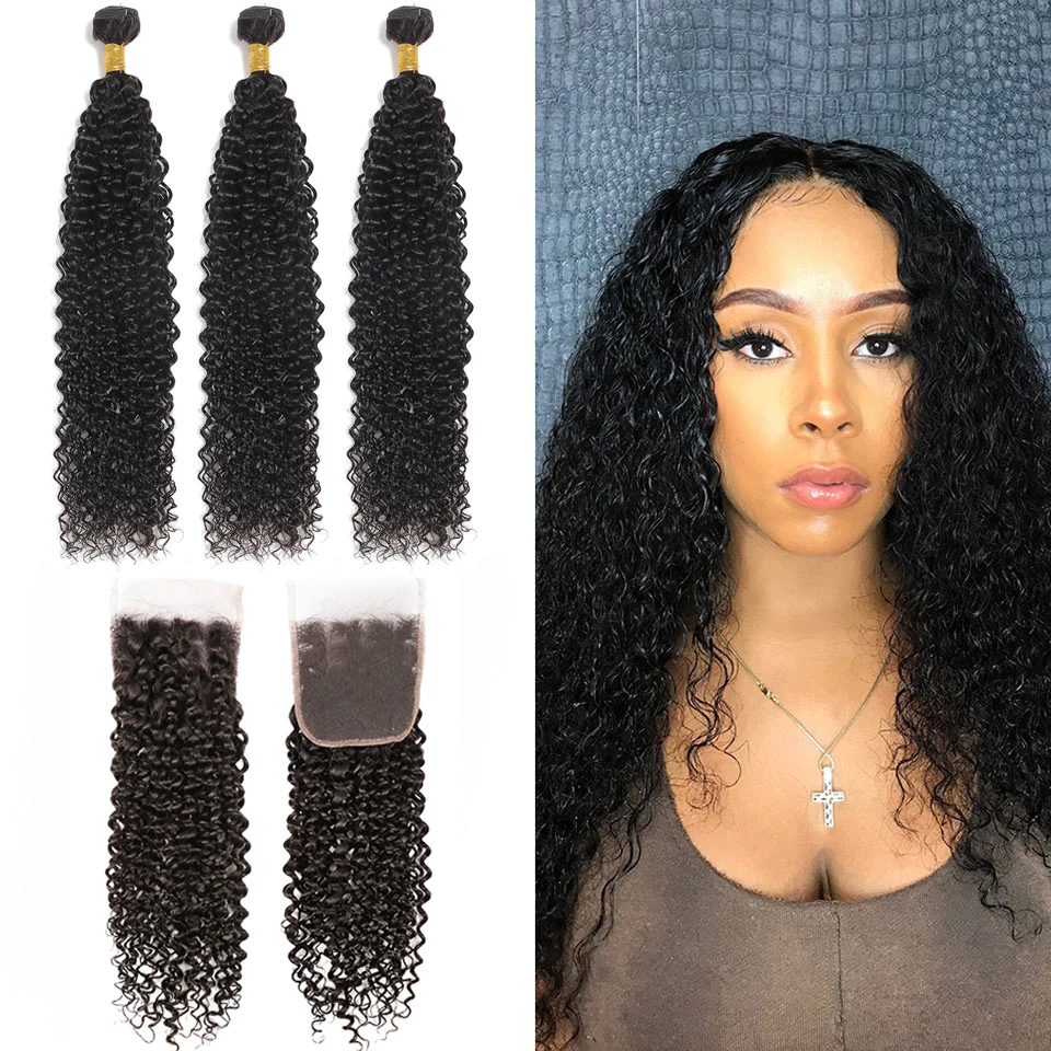 Бразильские волосы Джерри Керл пряди с закрытием бразильские волосы пряди с закрытием Remy 100% человеческие волосы пряди с фронтальной