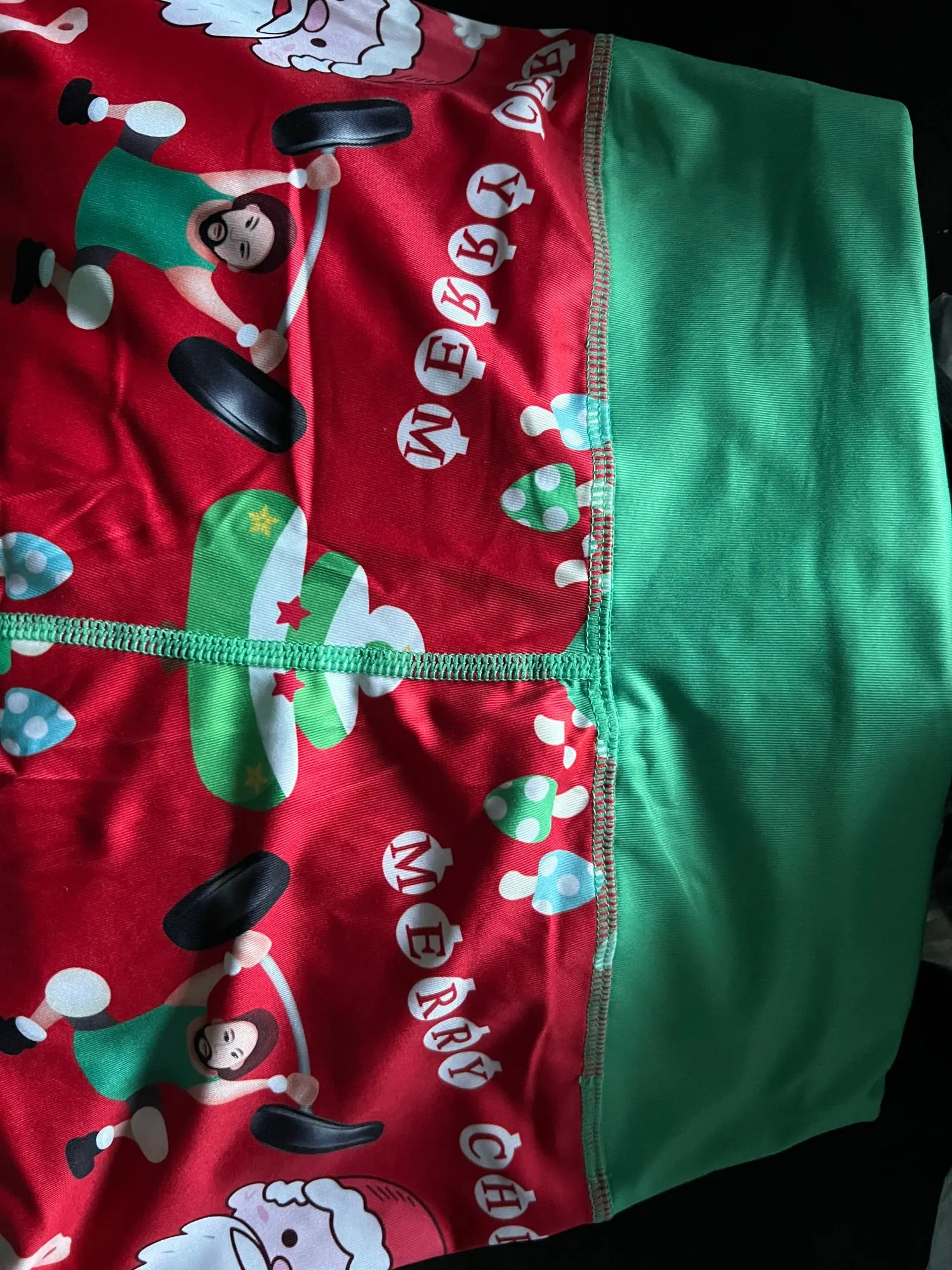 Купил этот товар из-за забавного принта «Merry fitmass», но на нем нет fitmas, только обычное Рождество. Также отсутствует зеленый V над попком. Это нормально по цене, но теперь вы знаете, что вы действительно покупаете. Я 156 см и 55 кг, и он хорошо сидит (немного свободно на нижних ногах)