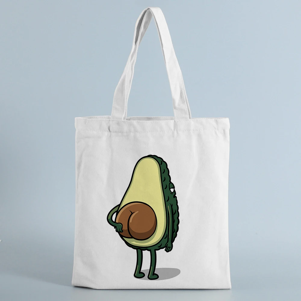 Кавайная Холщовая Сумка-тоут с авокадо, клубникой, индивидуальная Экологически чистая сумка для покупок с логотипом для девочек, женские повседневные сумки через плечо